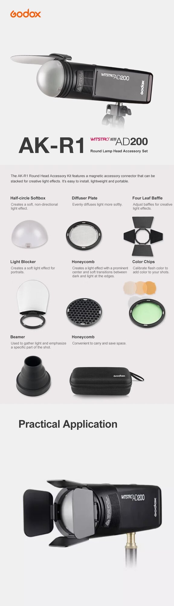 Godox AK-R1 + S-R1 Насадки для вспышки AD200 H200R V1, AK-R11 интересное: