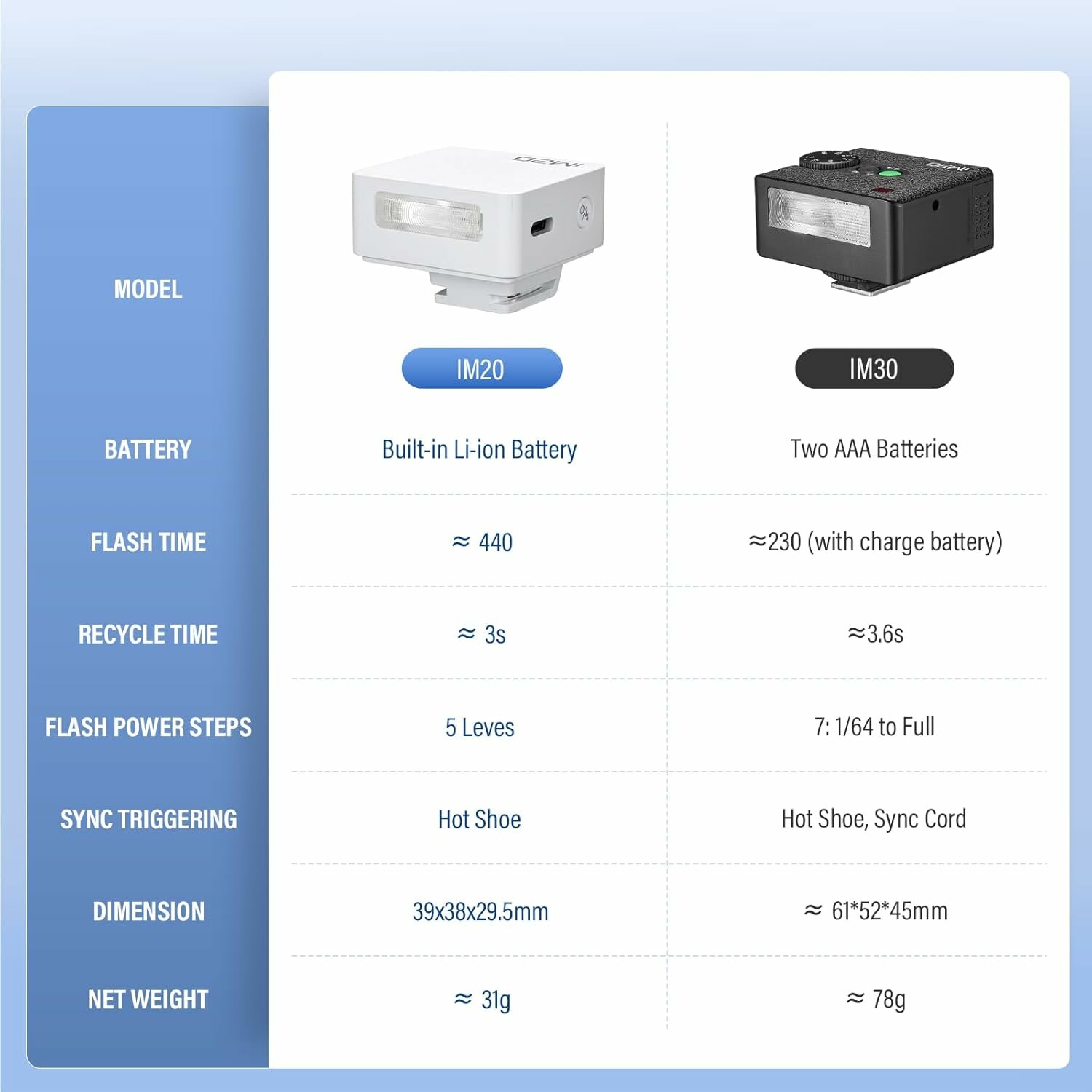Купить Миниатюрная вспышка Godox IM20, время перезарядки 3 с, Встроенная литиевая батарея для камер с горячим башмаком - белая