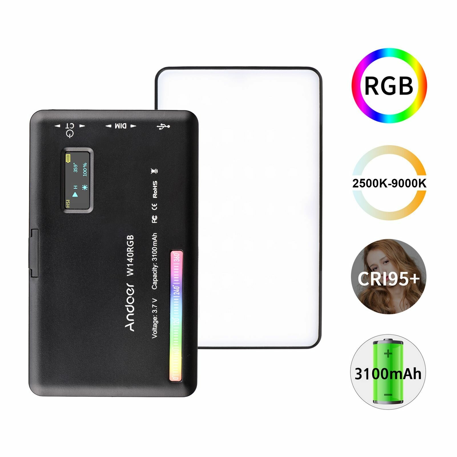 Купить Видеосвет, Andoer W140RGB, 2500 К-9000 К, регулируемая яркость, 20 видов световых эффектов-e