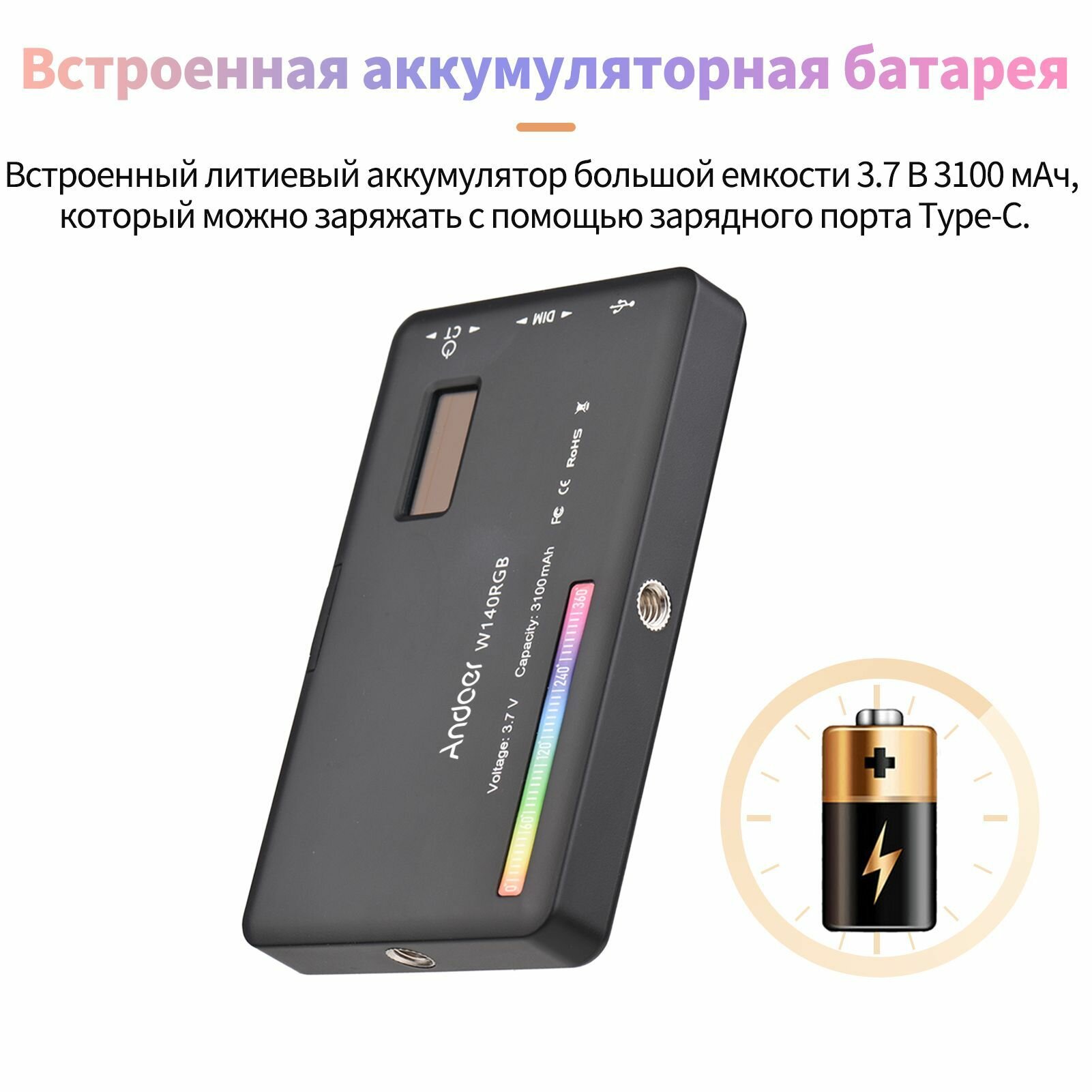 Видеосвет, Andoer W140RGB, 2500 К-9000 К, регулируемая яркость, 20 видов световых эффектов-e интересное: