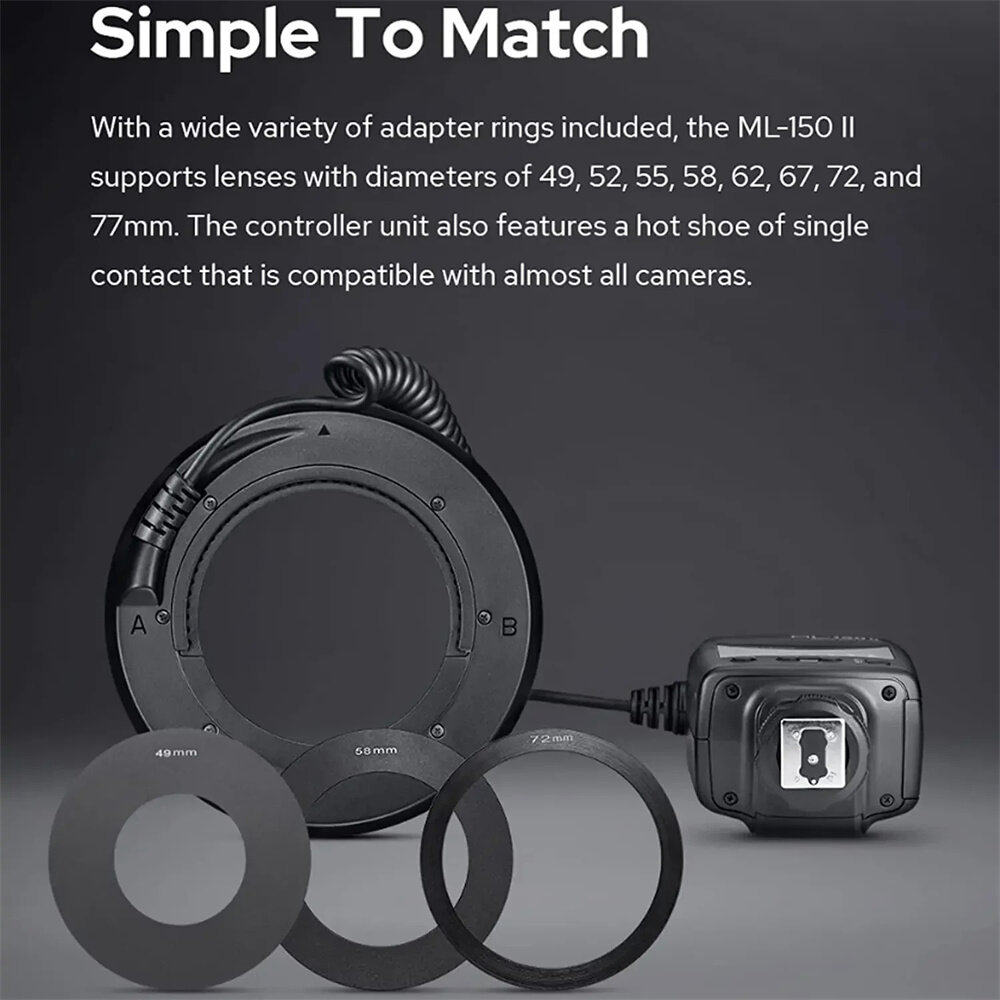 Godox ML150II Светодиодная кольцевая вспышка Speedlite GN12 5800K ±200K интересное: