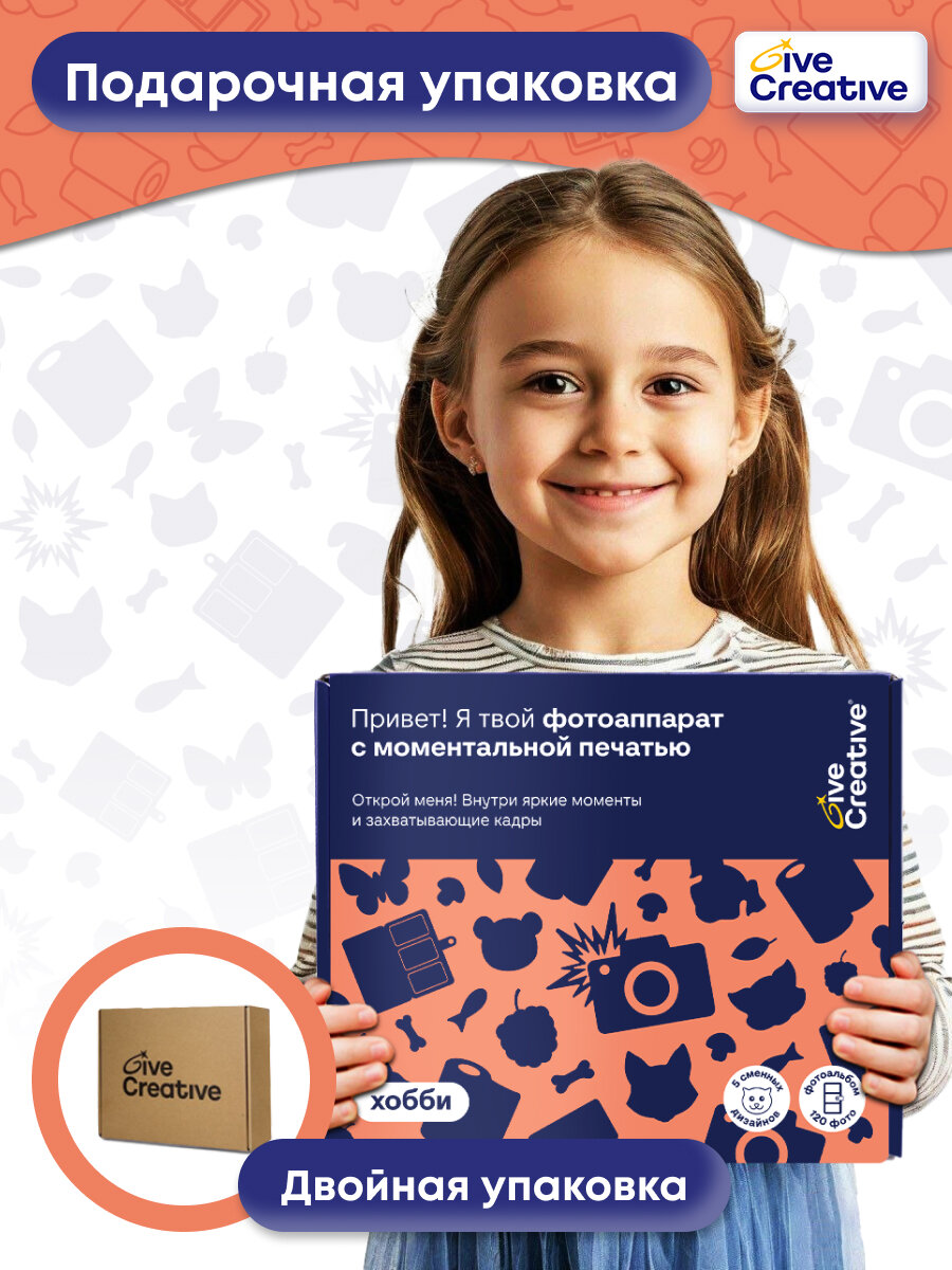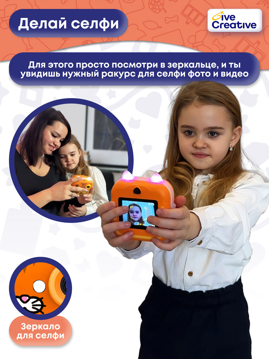 Купить Детский фотоаппарат моментальной печати с видео Give Creative, мини принтер с набором плёнок для печати