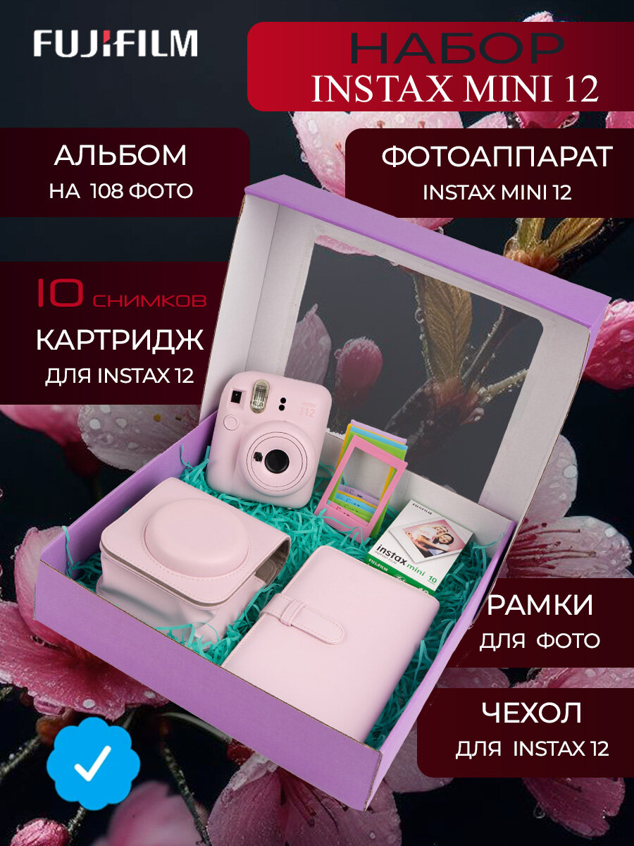 Купить Набор с фотоапаратом Fujifilm Instax Mini 12 и аксессуарами, 10 картриджей, фотоальбом, чехол, розовый
