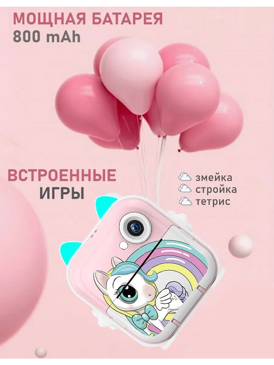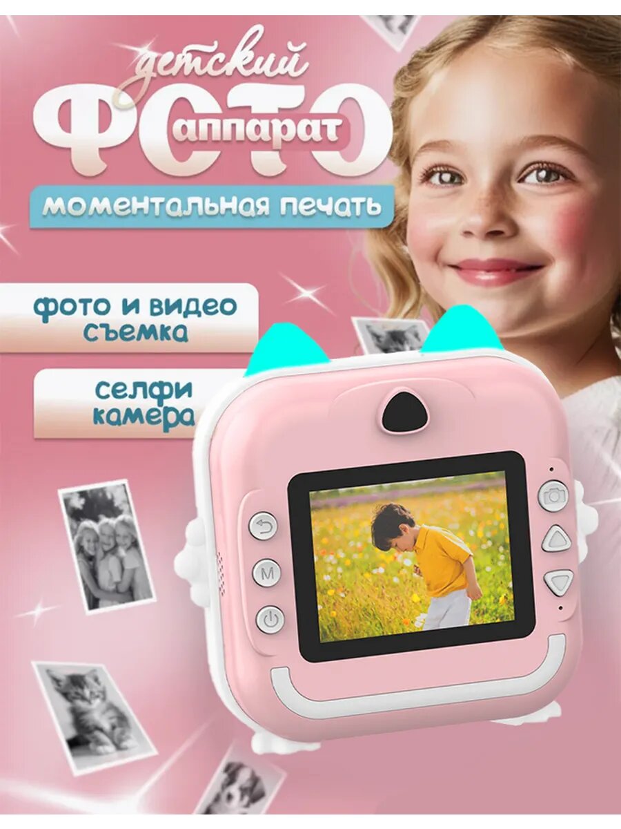 Детский фотоаппарат "Моментальная печать", с играми, звуком, моментальной печатью и USB, 1 шт интересное: