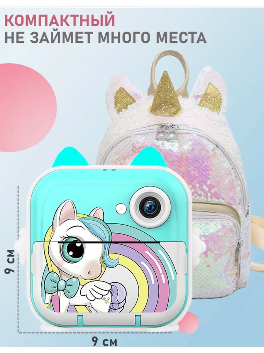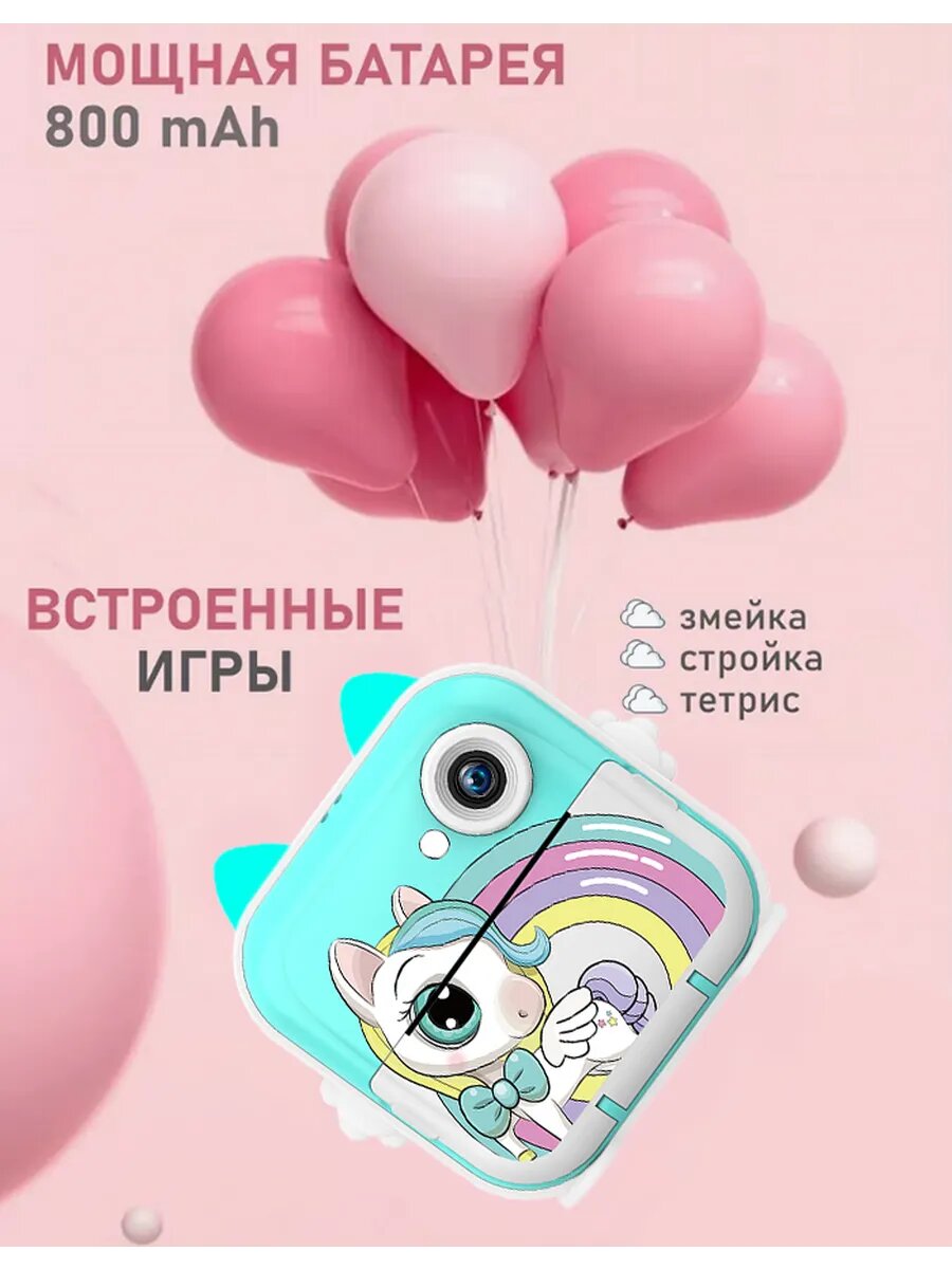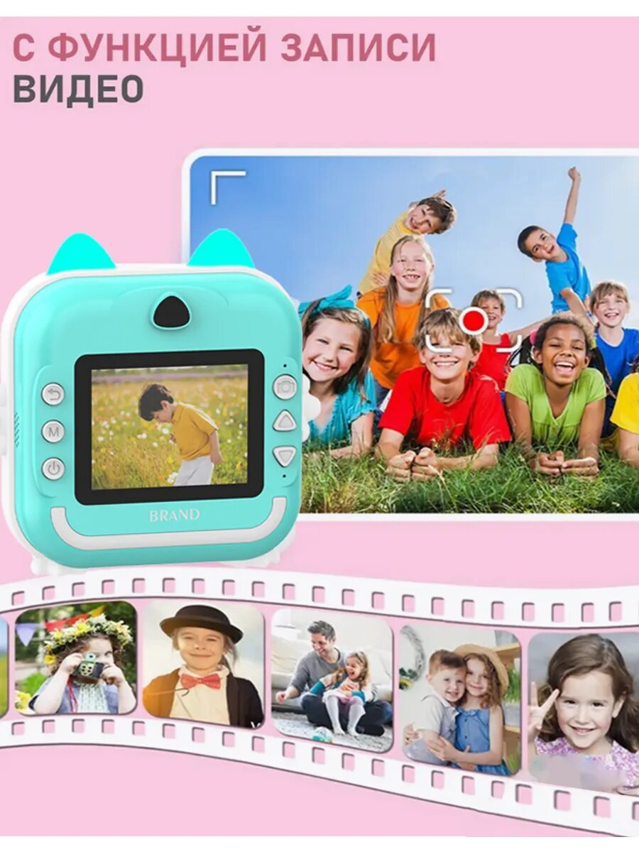 Купить Детский фотоаппарат мгновенной печати, с чехлом, 3 рул. бумаги, наклейки, фломастеры, USB-кабель