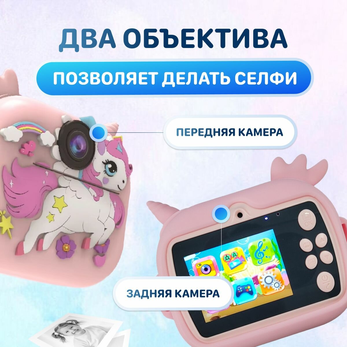 Купить Детский фотоаппарат мгновенной печати Kid Joy Print Cam, единорог (KDJ-P14) Pink