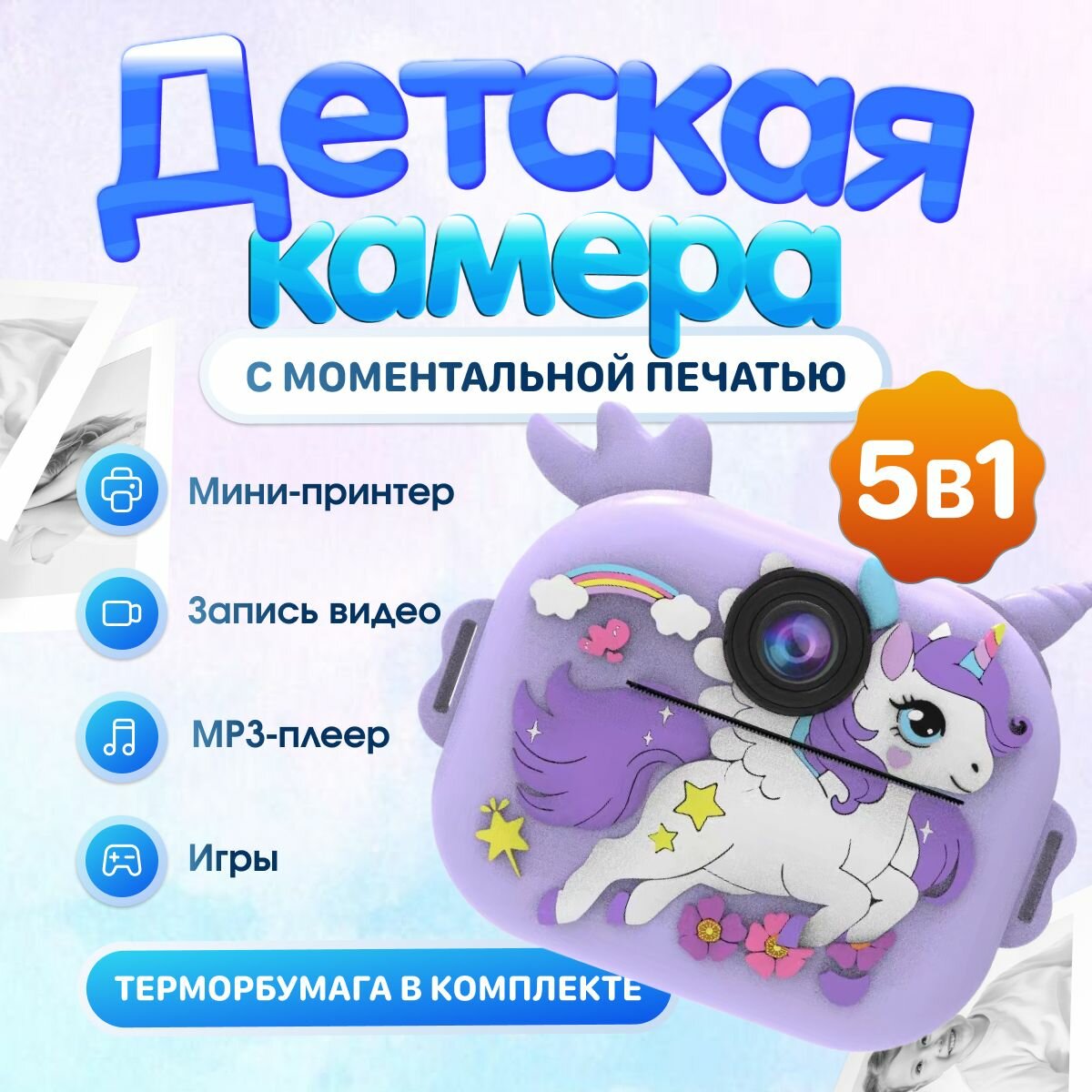 Купить Детский фотоаппарат мгновенной печати Kid Joy Print Cam, единорог (KDJ-P14) Purple