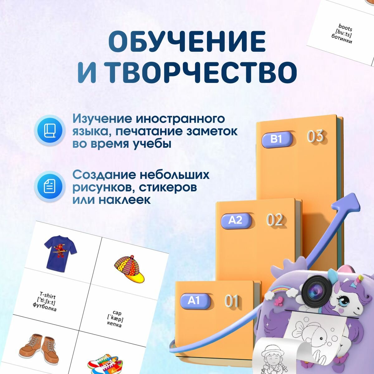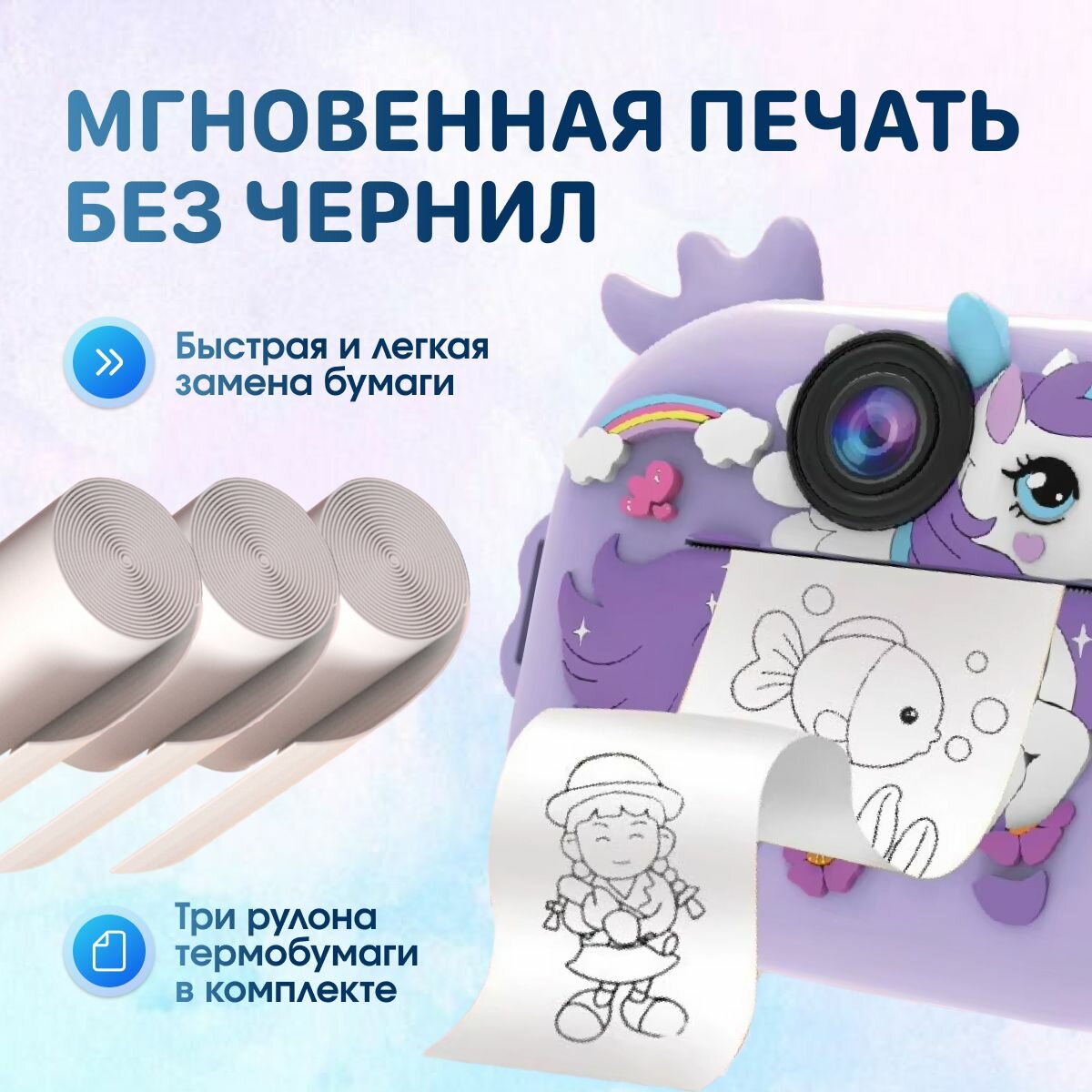 Детский фотоаппарат мгновенной печати Kid Joy Print Cam, единорог (KDJ-P14) Purple интересное: