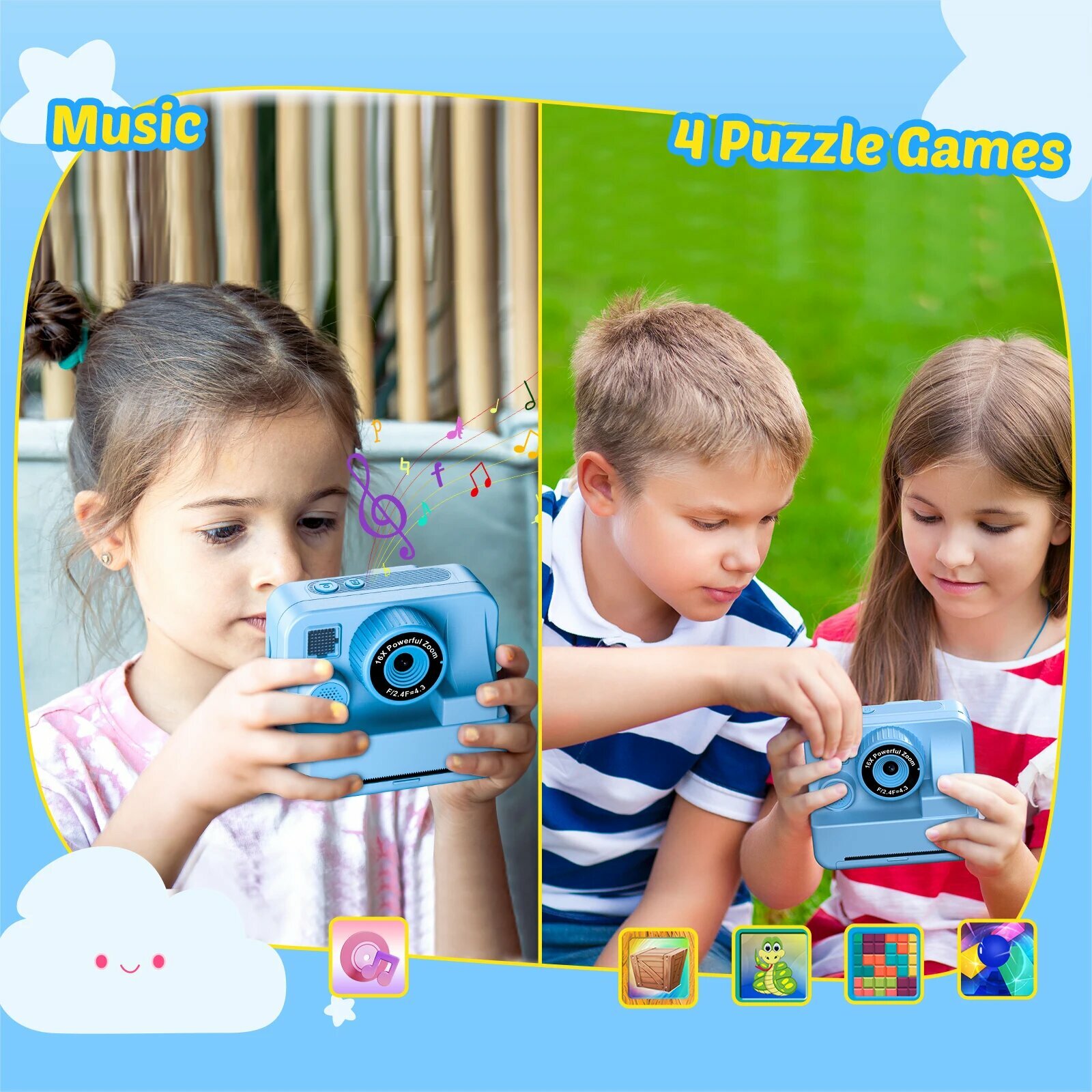 New bee детская мгновенная камера, H16 Blue, Комплект 1