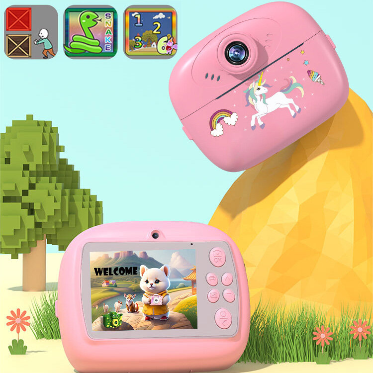 Купить Детский фотоаппарат "Мгновенная печать", с играми и Забавный аватар,48 Мп, Передняя и задняя камеры, 1100 мАч
