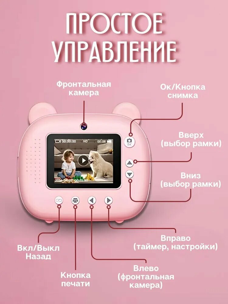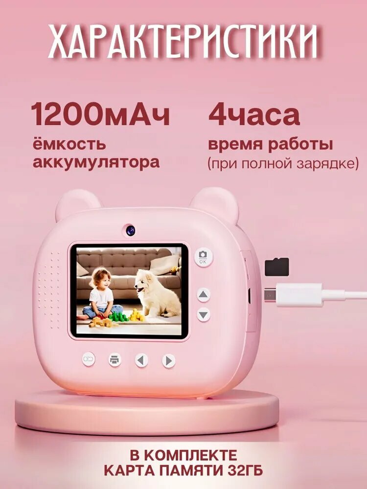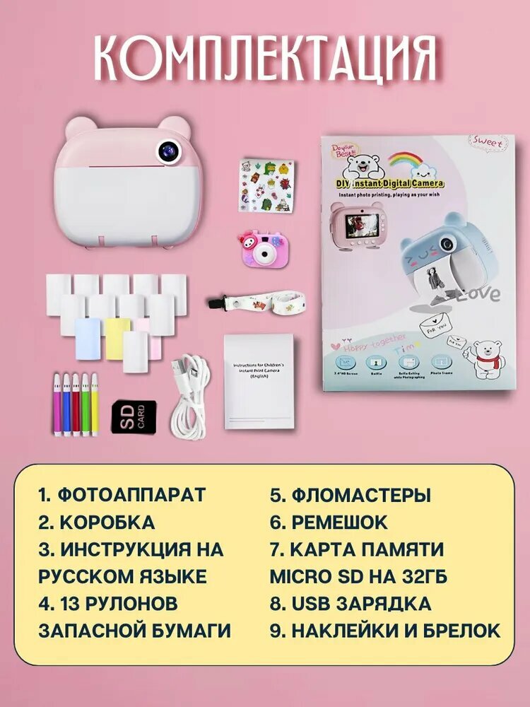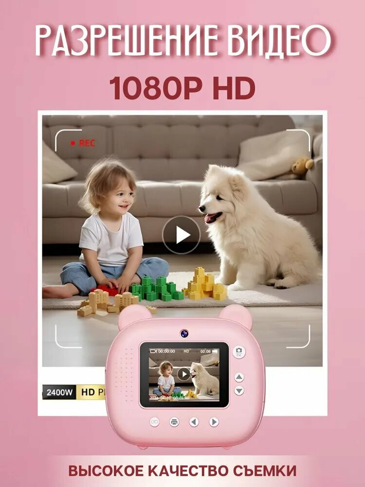 Фотоаппарат детский мгновенной печати,Детская печатная камера, Kids toys,розовый интересное: