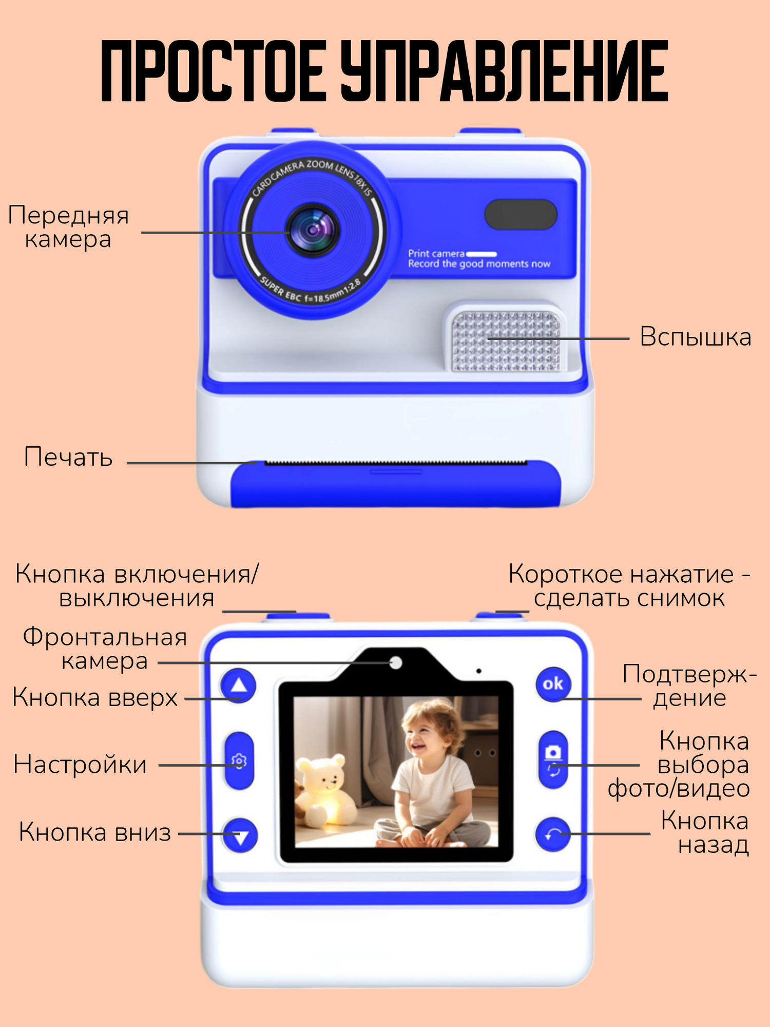Мини фотоаппарат для детей с мгновенной, моментальной печатью / Синий интересное:
