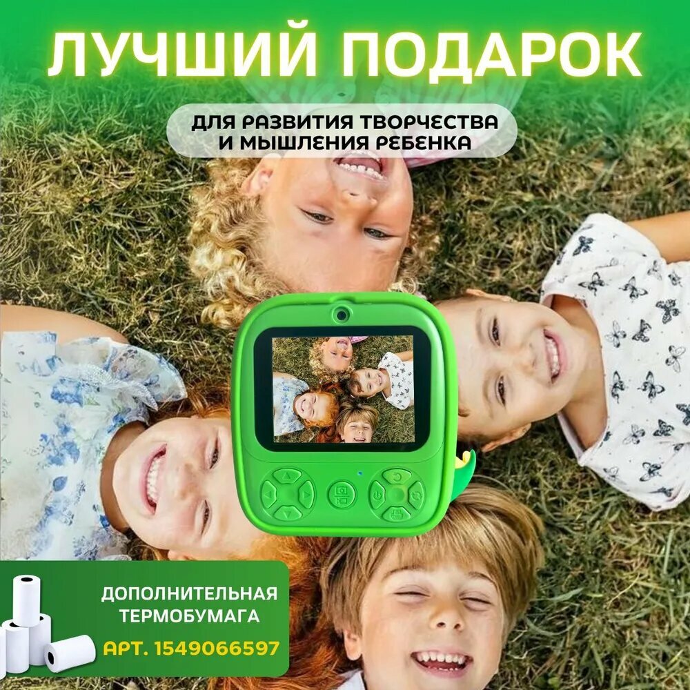 Купить Фотоаппарат моментальной печати детский "Дино",Детская печатная камера, Kids toys,зеленый