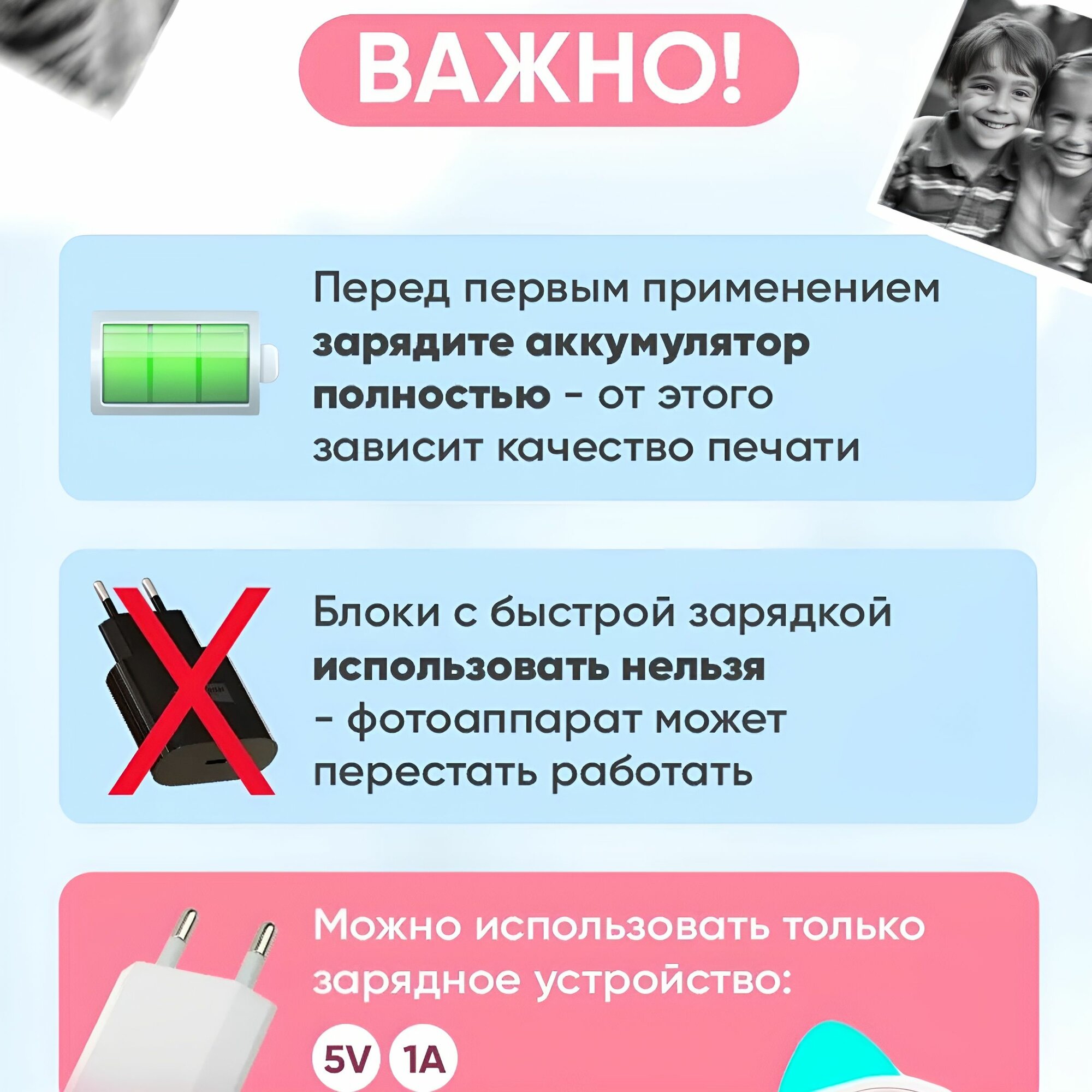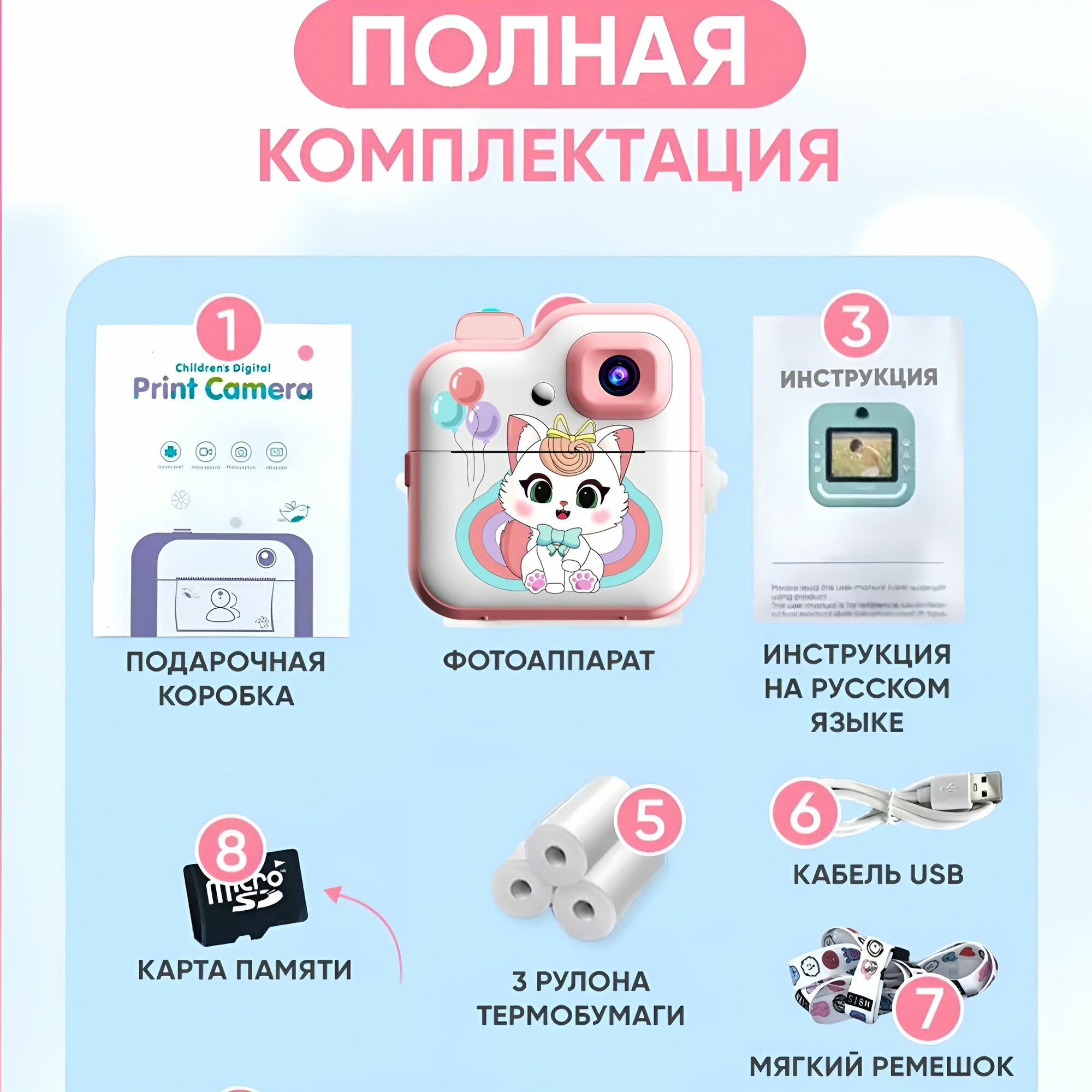 Детский фотоаппарат с мгновенной печатью фото Котик + карта памяти 32GB интересное: