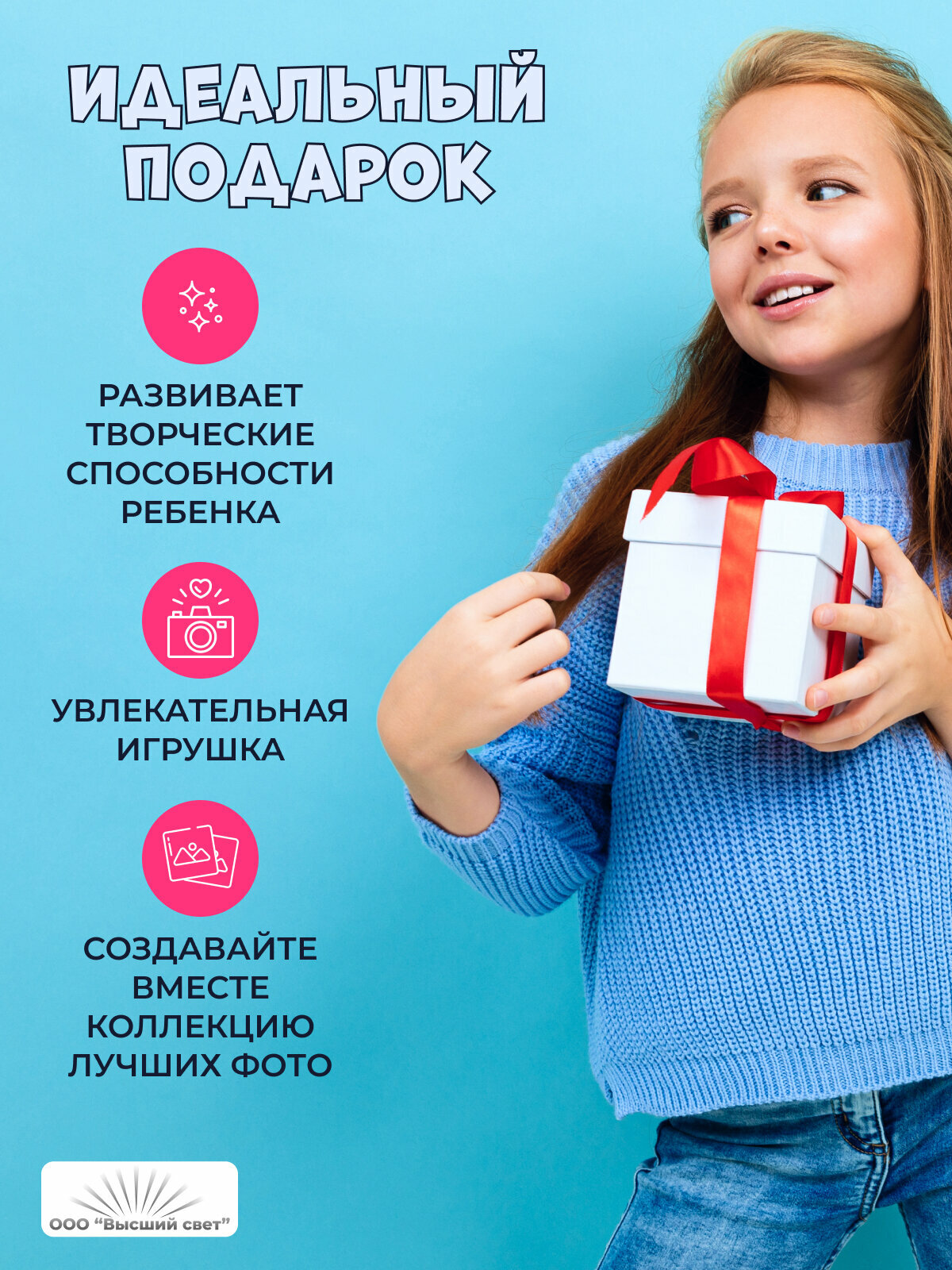 Детский фотоаппарат с моментальной печатью Полароид Селфи и игры, сова, розовый