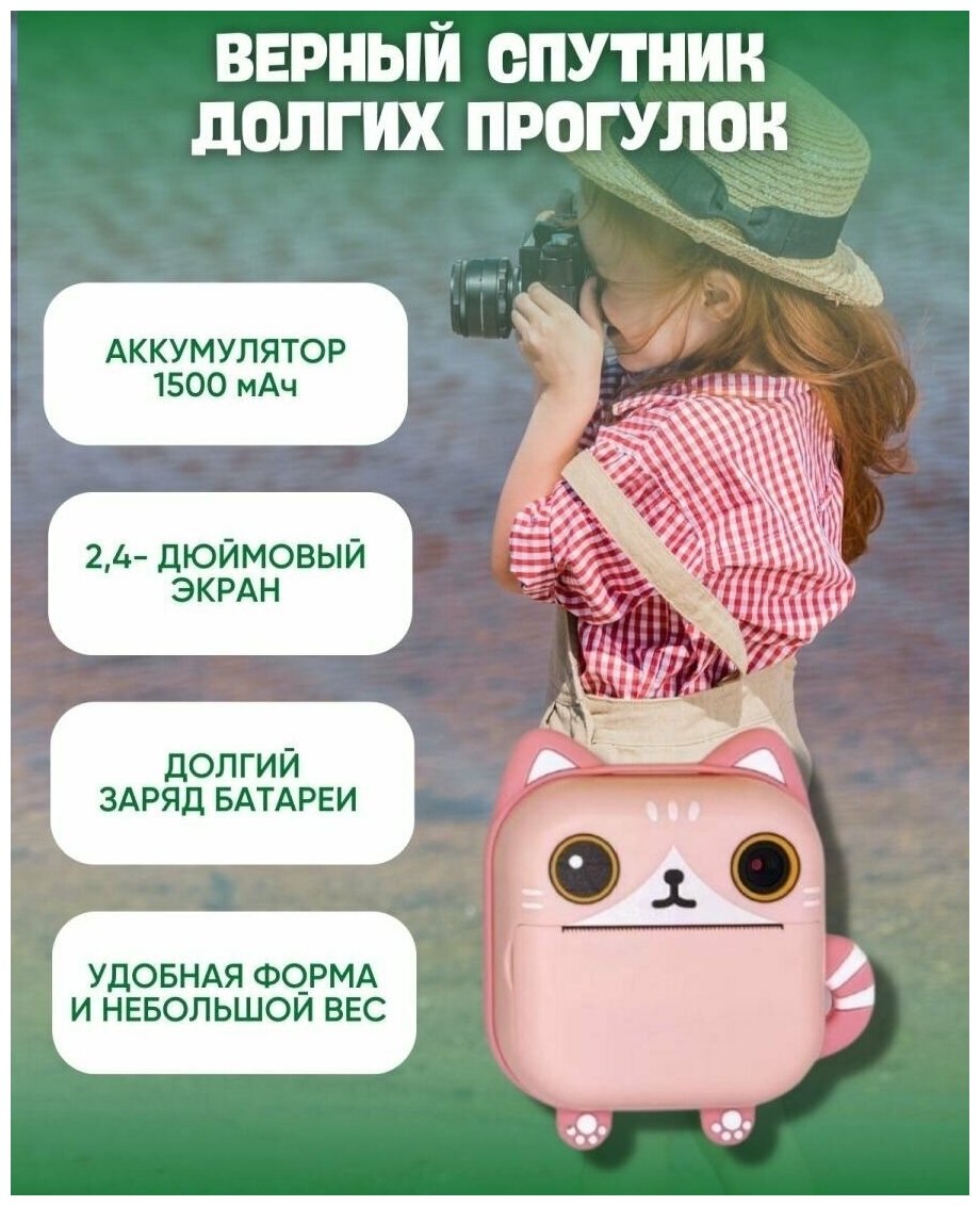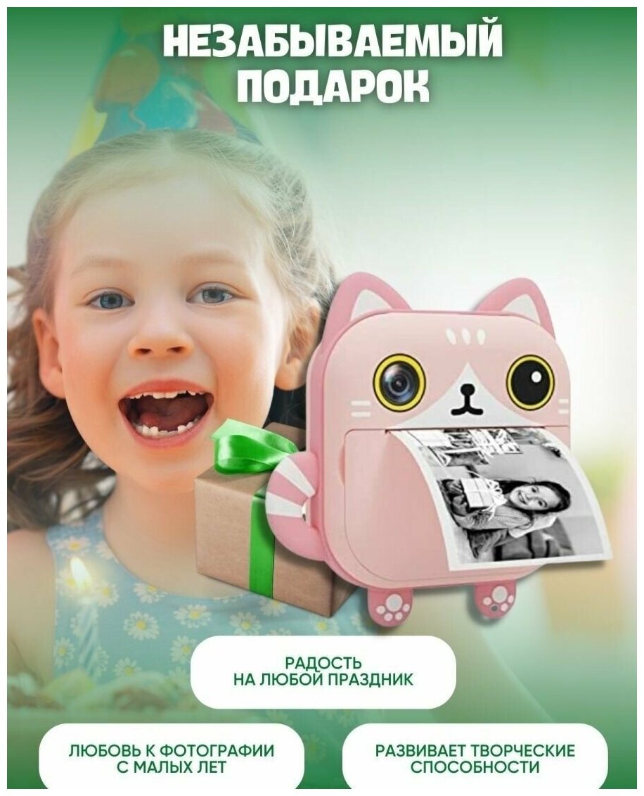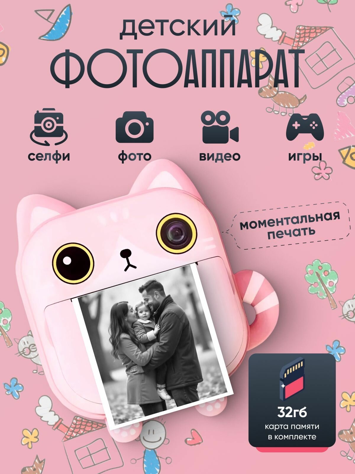 Детский фотоаппарат с мгновенной печатью фото Print Camera "Котик"+CD карта 32GB (розовый). интересное: