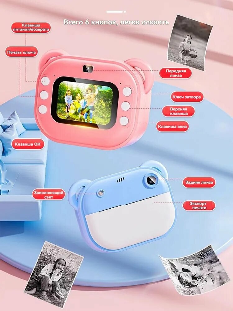 Фотоаппарат моментальной печати "Детский", голубой, 2" HD экран интересное: