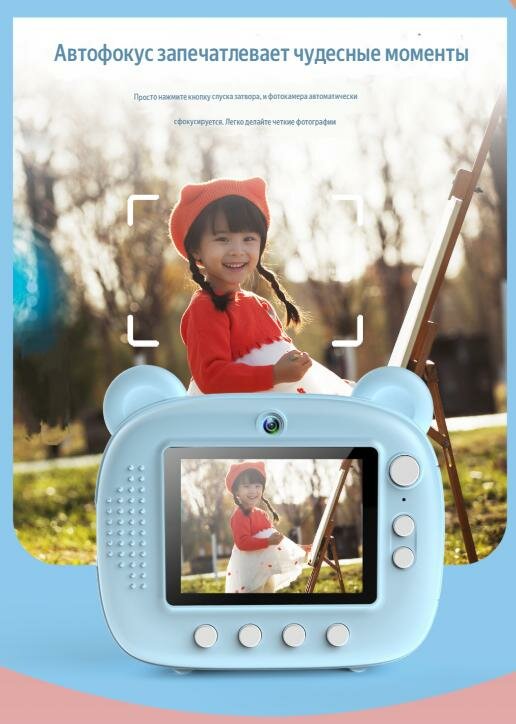 Детский фотоаппарат моментальной печати, синий, 1920x1080, 32ГБ, с аксессуарами интересное: