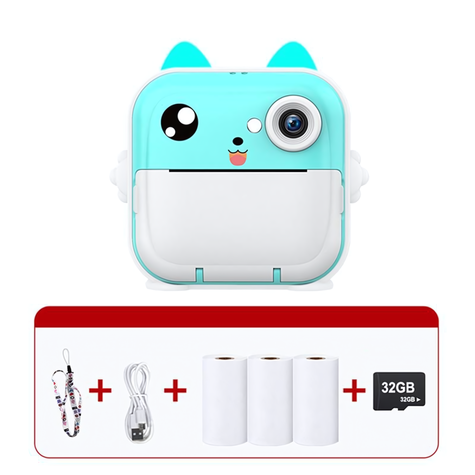Купить Детский фотоаппарат моментальной печати Q5 Blue Cat, + 3 рулона фотобумаги, карта памяти 32 Гб, ремешок, USB кабель
