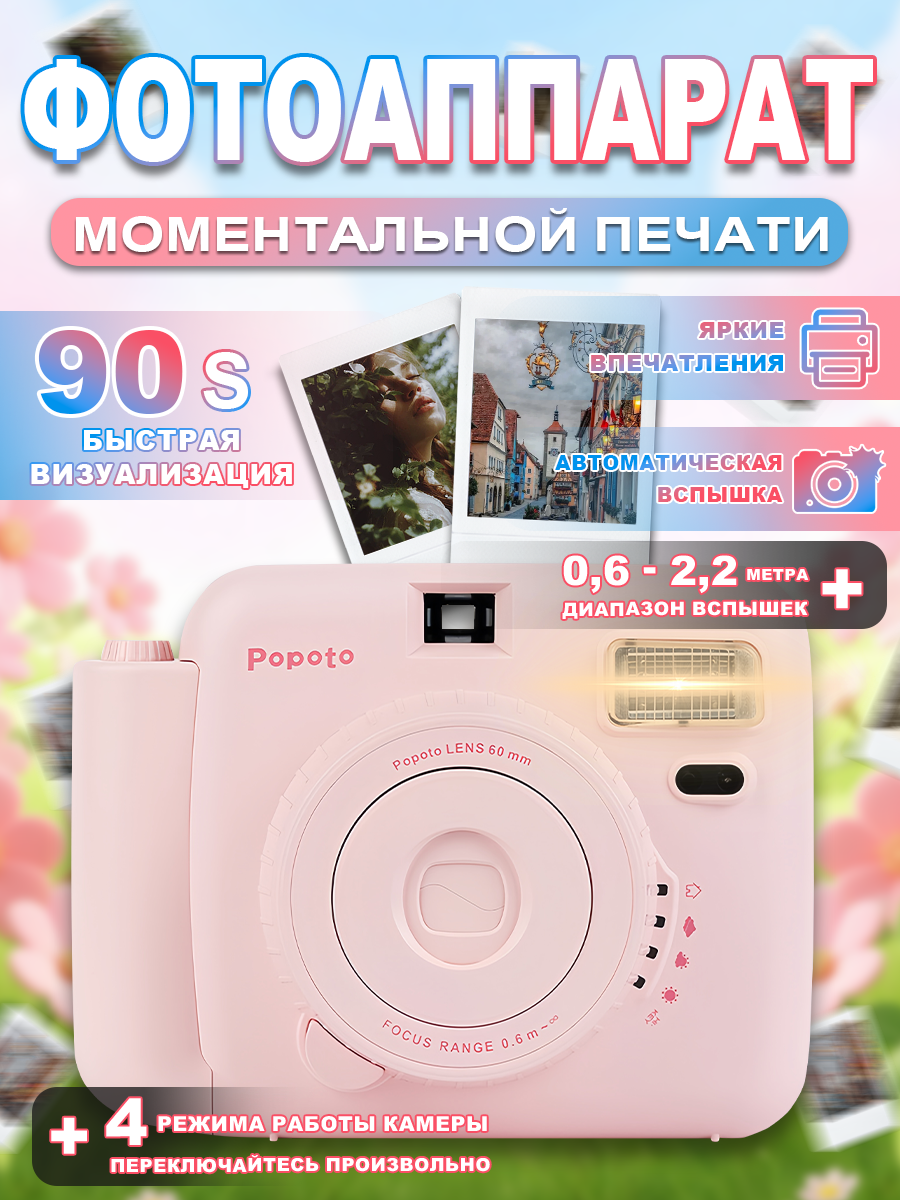 Купить Фотоаппарат Моментальной Печати,Автоматическая вспышка,Долгое хранение