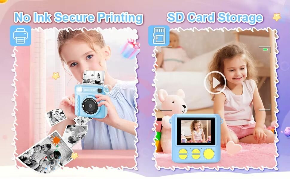Купить Детский фотоаппарат мгновенной печати /Полароид моментальной печати+CD карта В подарок(Синий)