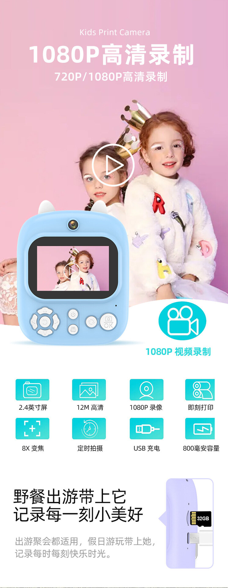Фотокамера Polaroid P2, для детей, с мультяшными изображениями, зеркальная, 32GB