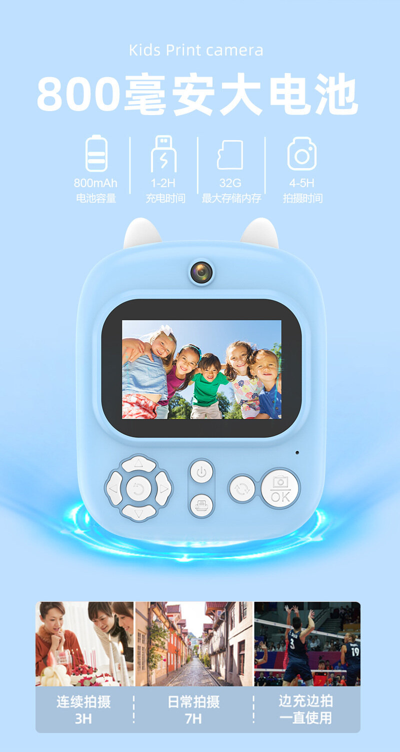 Фотокамера Polaroid P2, для детей, с мультяшными изображениями, синяя
