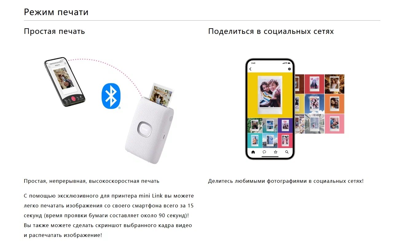 Принтер FUJIFILM Instax Mini Link 2, белый с 20 листами, Фотопринтер интересное: