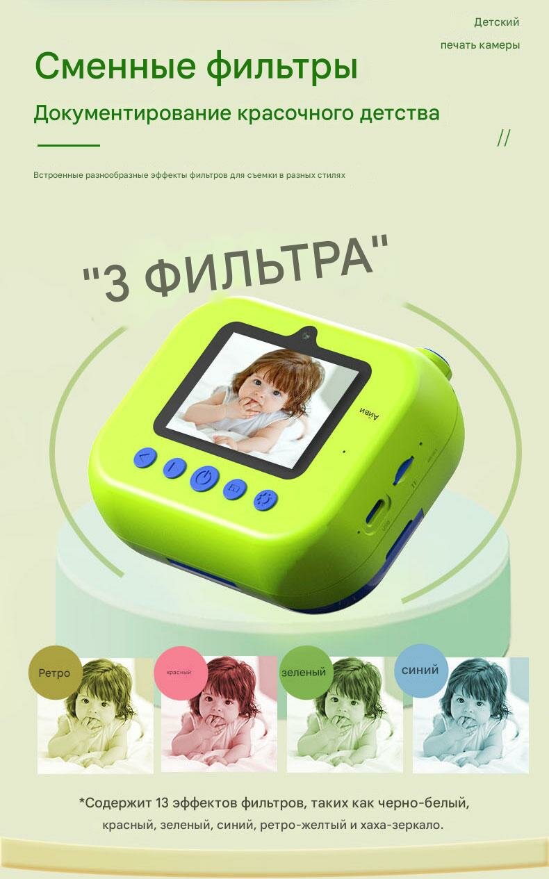 Детский фотоаппарат с мгновенной печатью 3 в 1 (3-12 лет) — HD-видео 1080P, 13 фильтров, музыка и безопасный дизайн интересное: