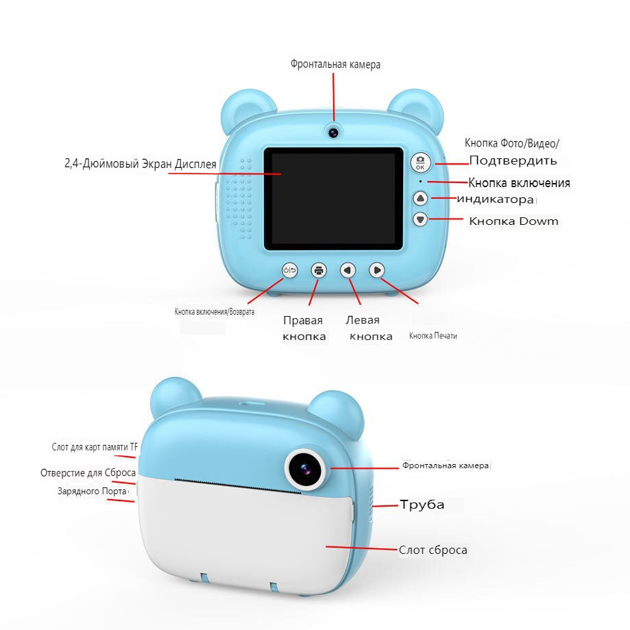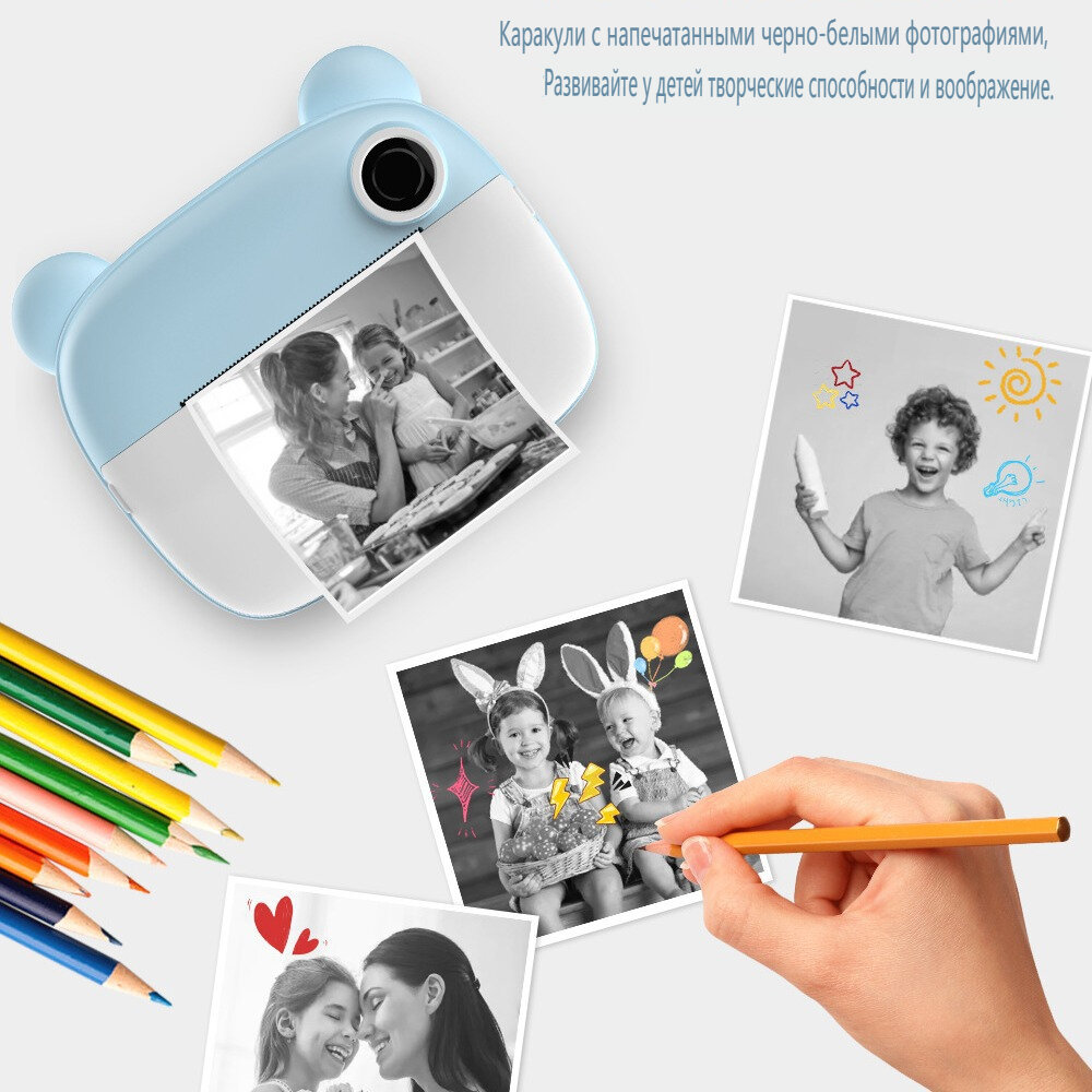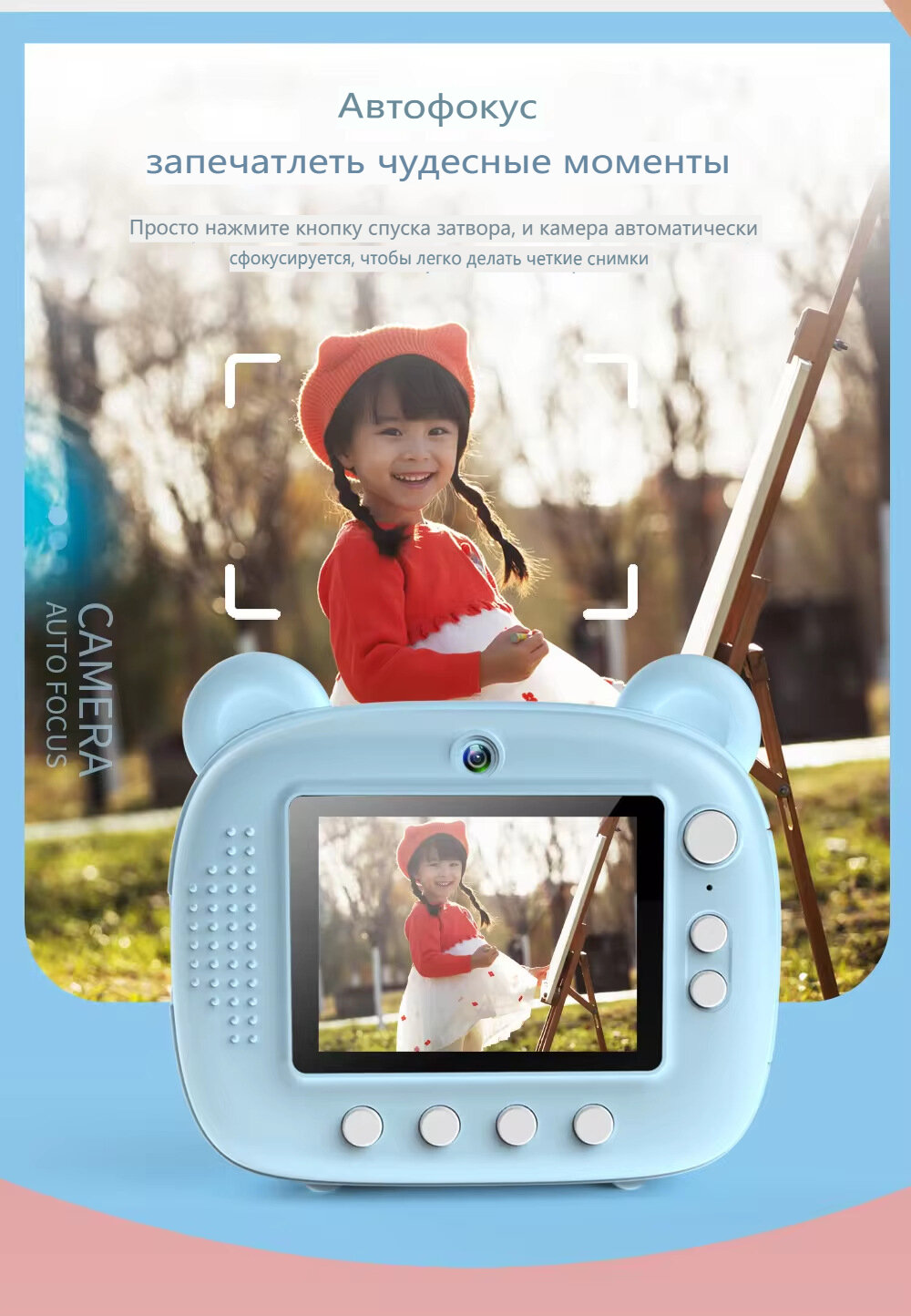 EX100Детский фотоаппарат , мгновенная печать, 48Мп, с аксессуc ,голубой,