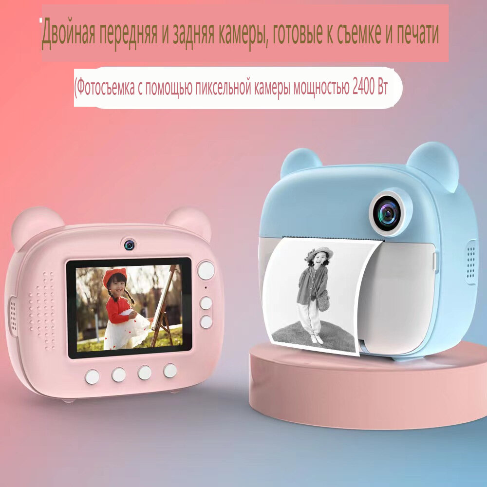 EX100Детский фотоаппарат , мгновенная печать, 48Мп, с аксессуc ,розовый,