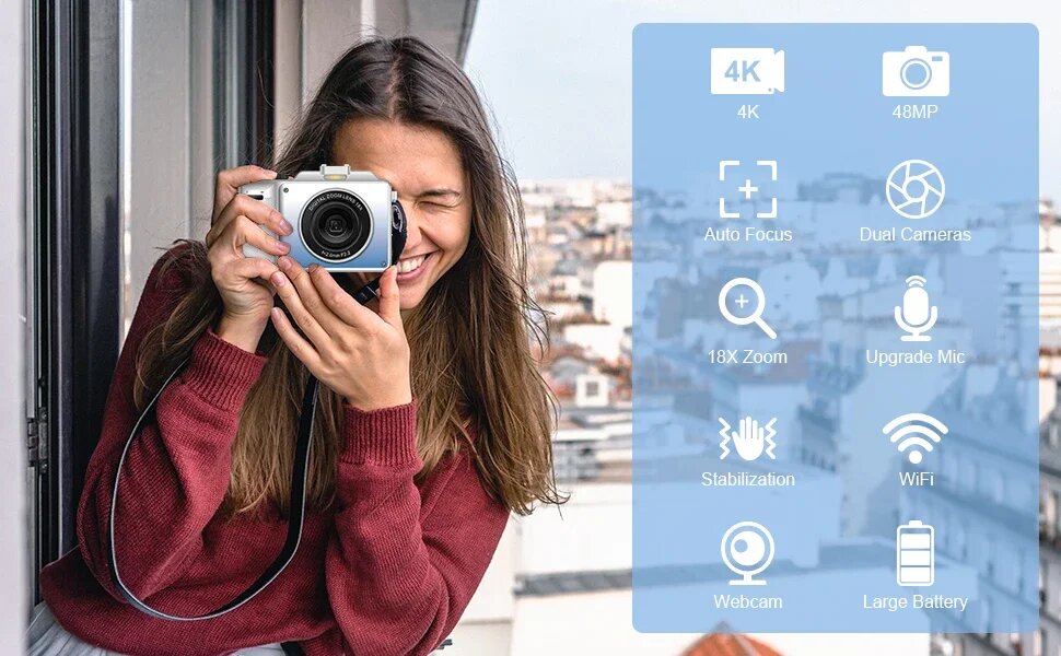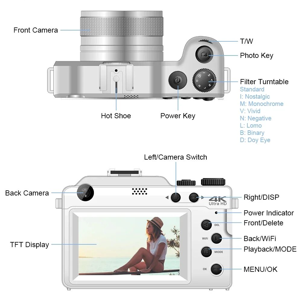 Ниже Вы можете прочитать отзывы на DIXSG Цифровая камера 4K, Black, With 32G Card, ознакомится с подробными характеристиками, посмотреть интересные обзоры и фотографии на DIXSG Цифровая камера 4K, Black, With 32G Card.