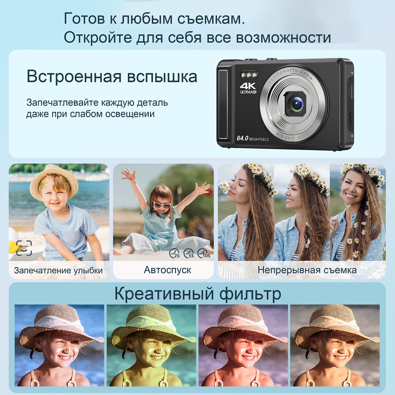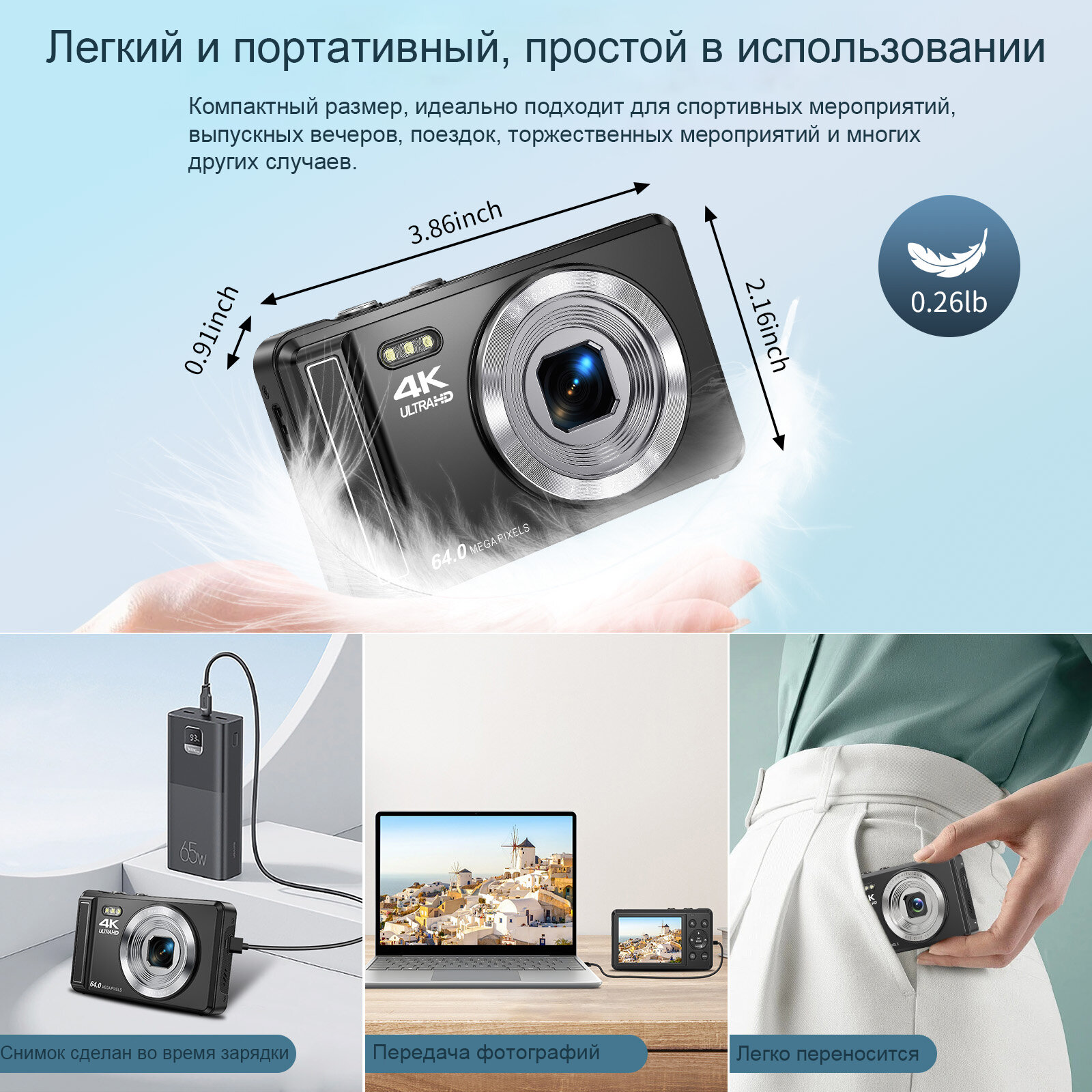 Ниже Вы можете прочитать отзывы на Цифровая камера для видеосъемки с разрешением 4K UHD 64 Мп, 16–кратным увеличением, SD-карта емкостью 32 ГБ, ознакомится с подробными характеристиками, посмотреть интересные обзоры и фотографии на Цифровая камера для видеосъемки с разрешением 4K UHD 64 Мп, 16–кратным увеличением, SD-карта емкостью 32 ГБ.