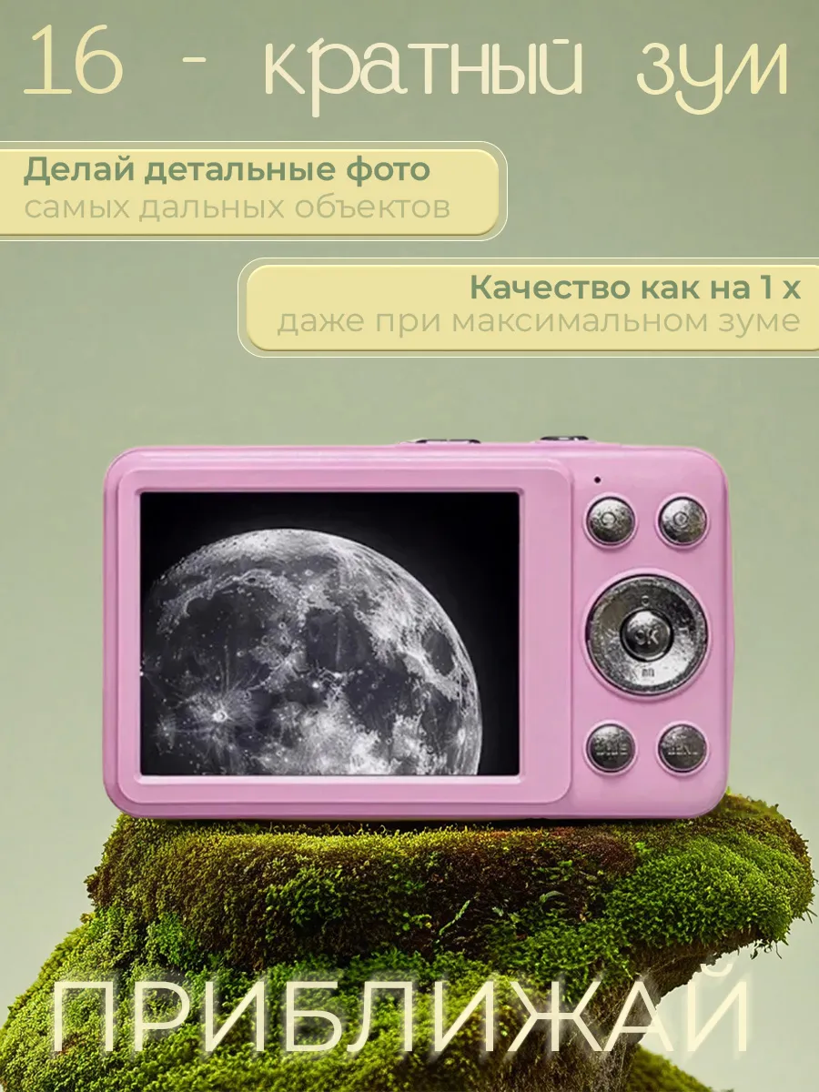 Фотоаппарат, цветной, компактные размеры, розовый, оптический зум 16x, 64Мп интересное:
