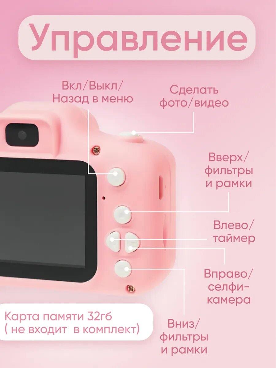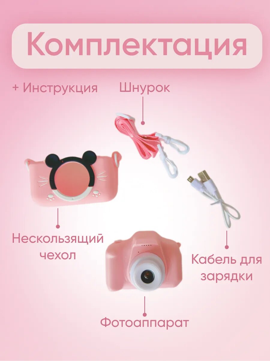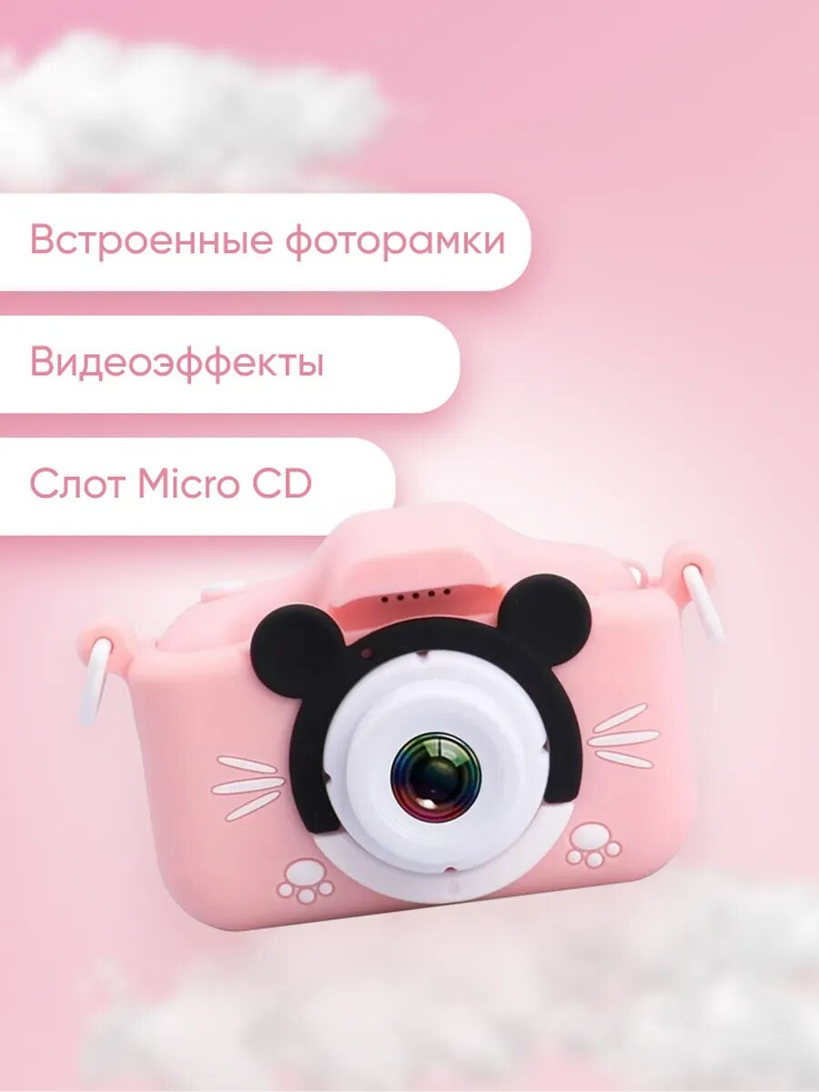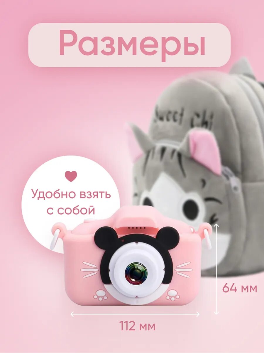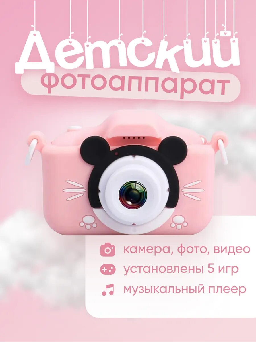 Фотоаппарат CUTE KITTY, детский, цифровой, с играми, селфи, розовый интересное: