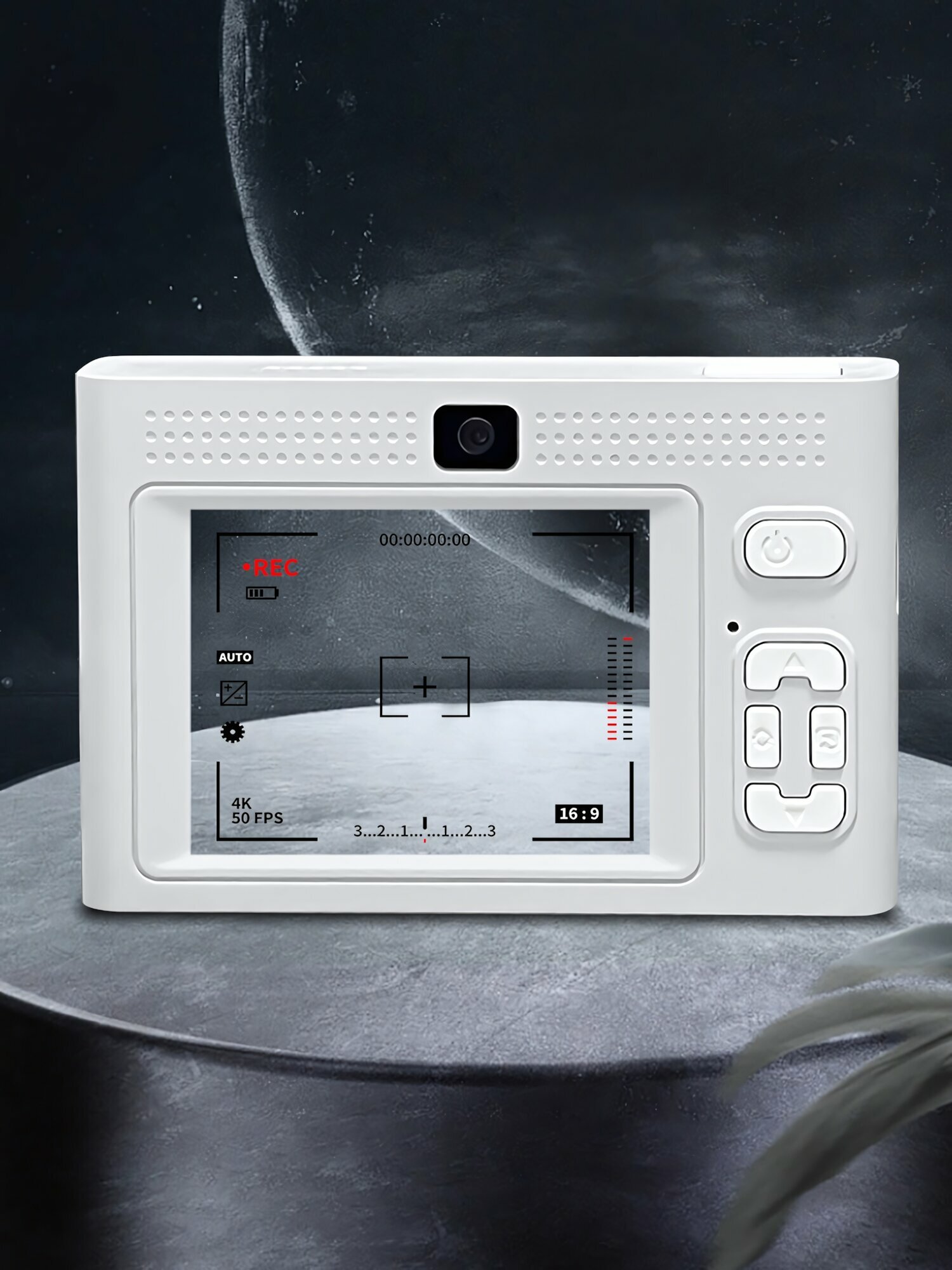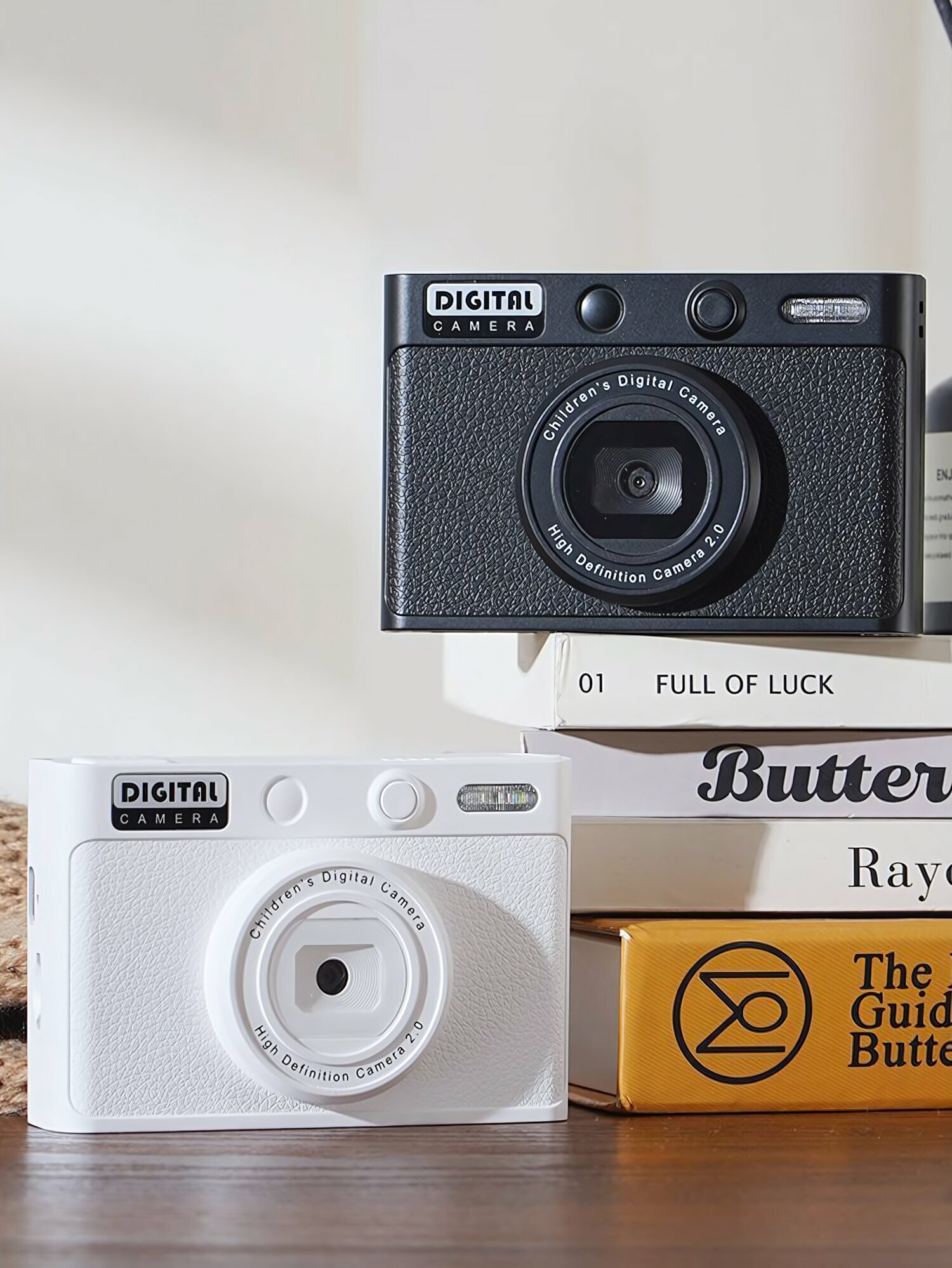 Компактный цифровой фотоаппарат в ретро-стиле, белый, с картой памяти 128 ГБ