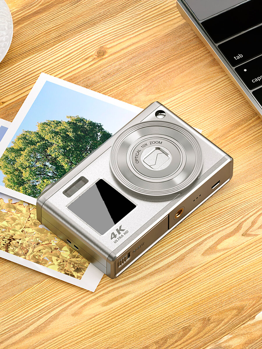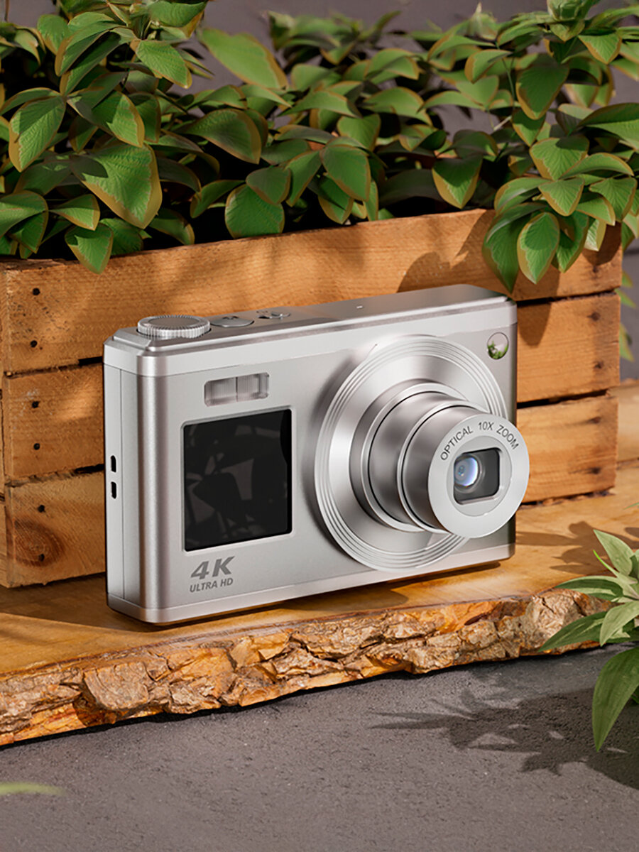 Цифровая камера MaxVision 4K Х10 с двойным экраном, цвет серебристый интересное:
