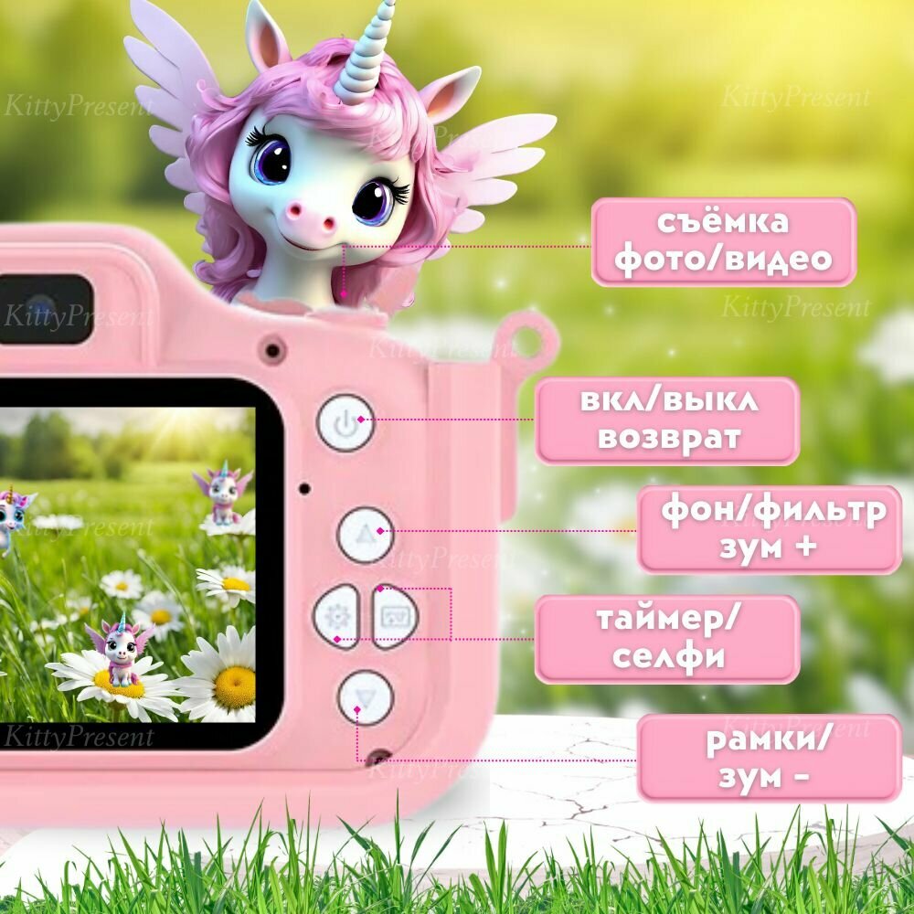 Купить Фотоаппарат детский Единорог розовый 48 Мп + карта памяти 32 ГБ