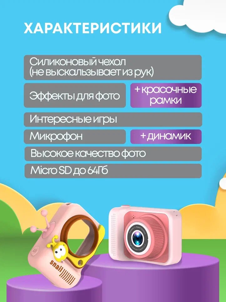 Фотоаппарат цифровой детский, улитка, черный интересное: