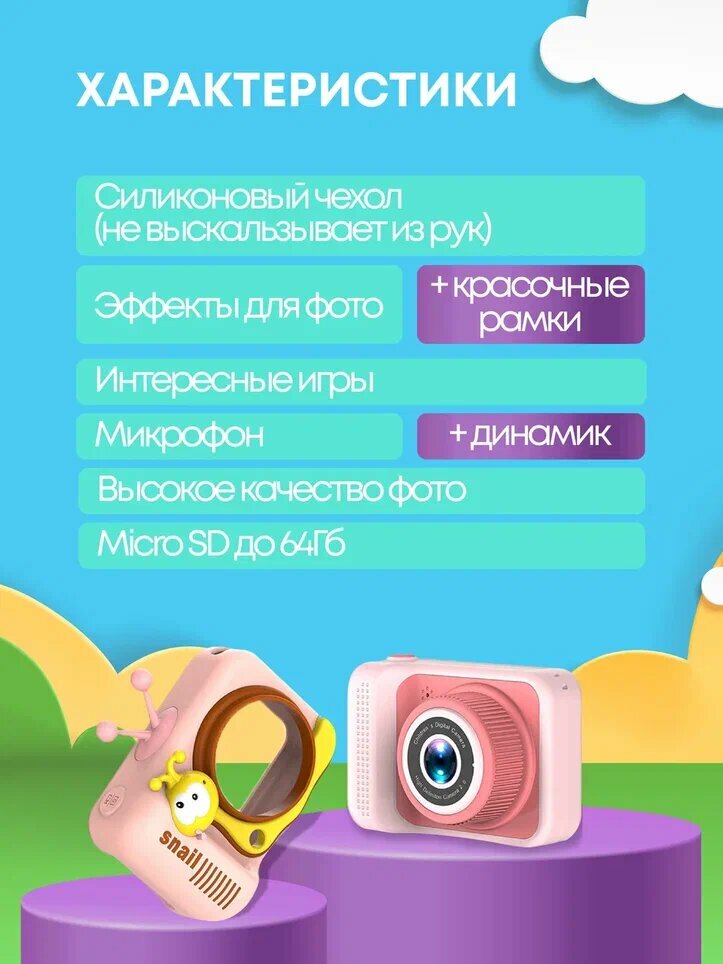 Ниже Вы можете прочитать отзывы на Фотоаппарат цифровой детский, улитка, зеленый, ознакомится с подробными характеристиками, посмотреть интересные обзоры и фотографии на Фотоаппарат цифровой детский, улитка, зеленый.