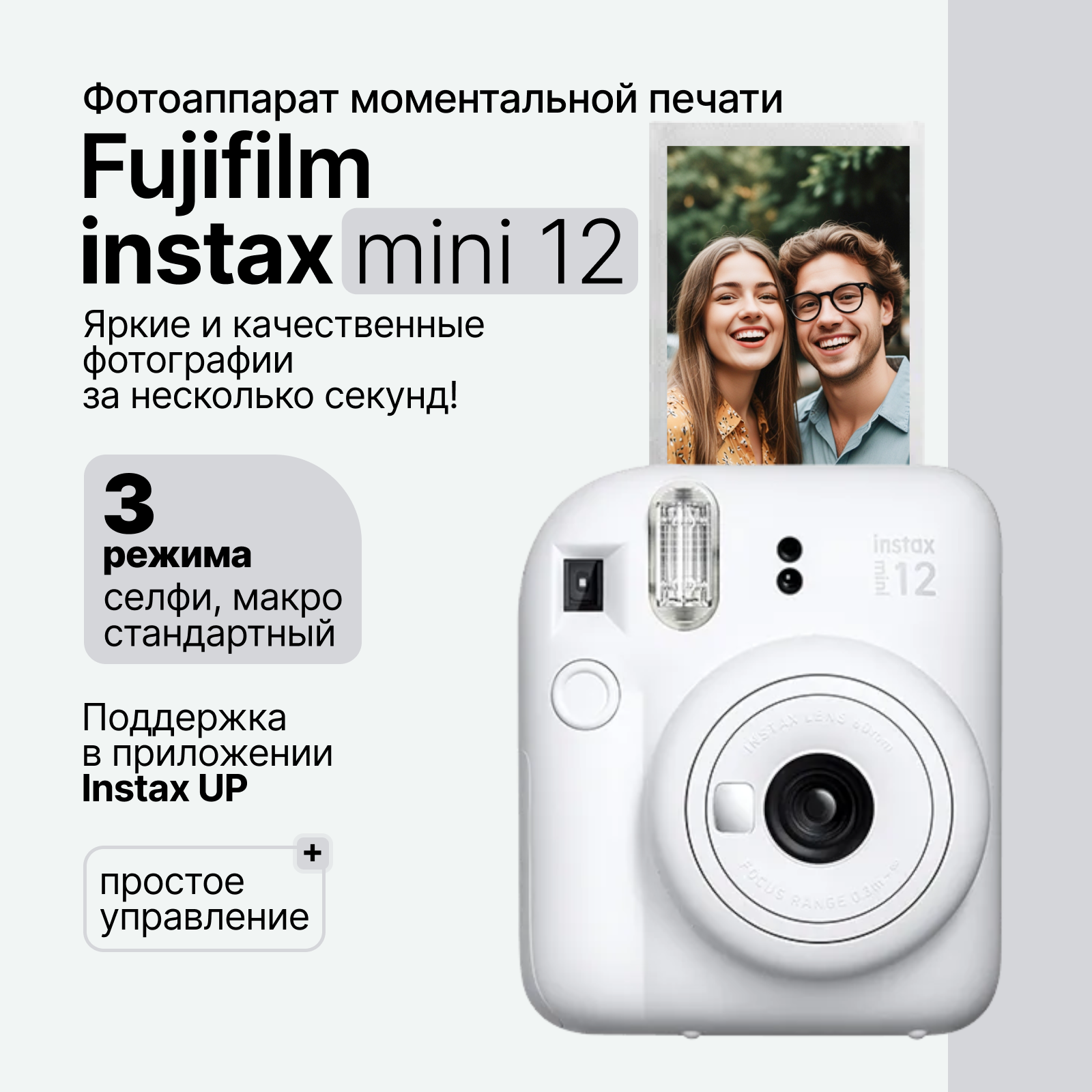 Компактный фотоаппарат моментальной печати Fujifilm Instax Mini 12, белый (Clay White) интересное: