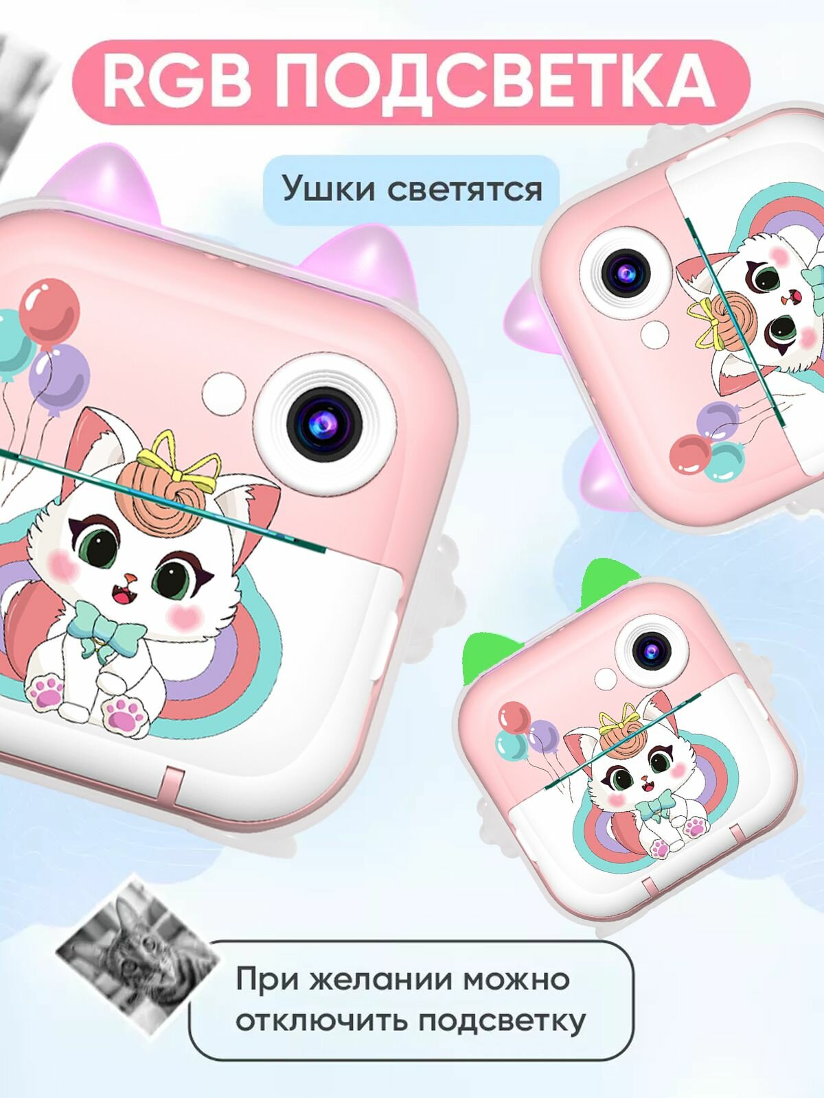 Фотоаппарат моментальной печати детский Котенок интересное:
