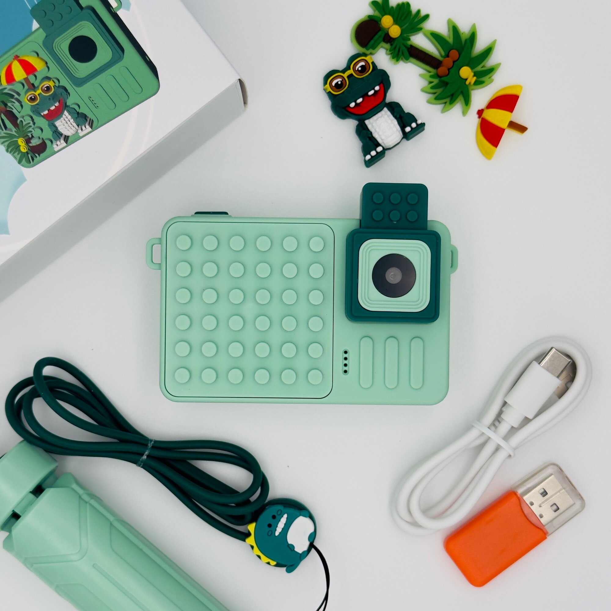 Детский фотоаппарат с Флип камерой для девочек и для мальчиков цифровой, фотокамера для детей со штативом, Крокодил для ребенка интересное: