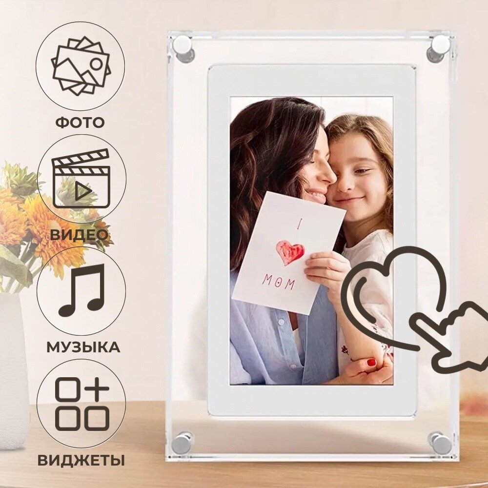 Купить Цифровая фоторамка 7 дюймов акриловая с WiFi, электронная с флешкой для фото и видео