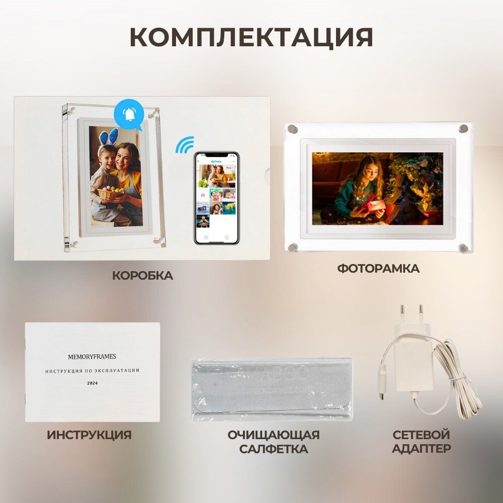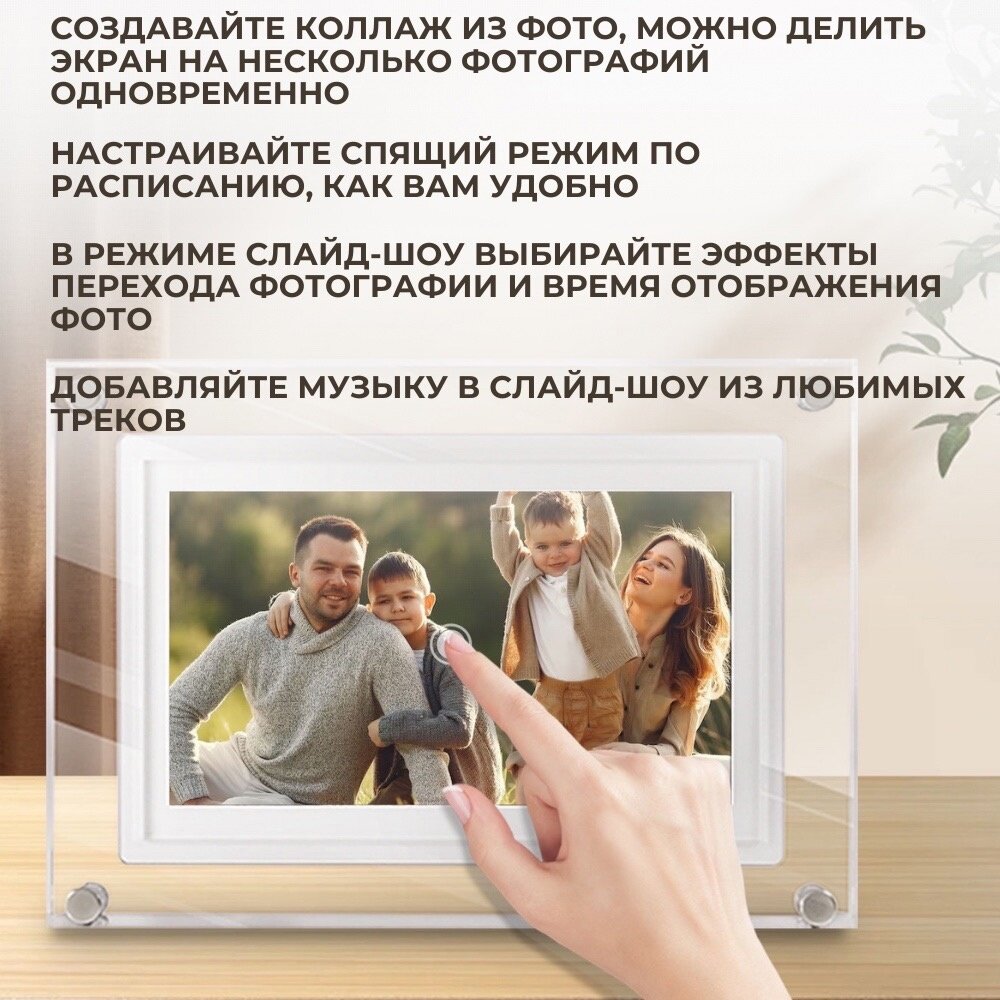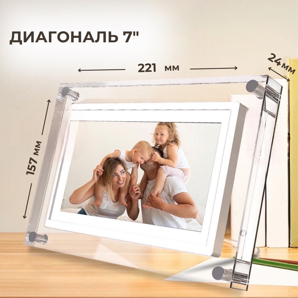 СохранитьЦифровая фоторамка 7 дюймов акриловая с WiFi, электронная с флешкой для фото и видео интересное: