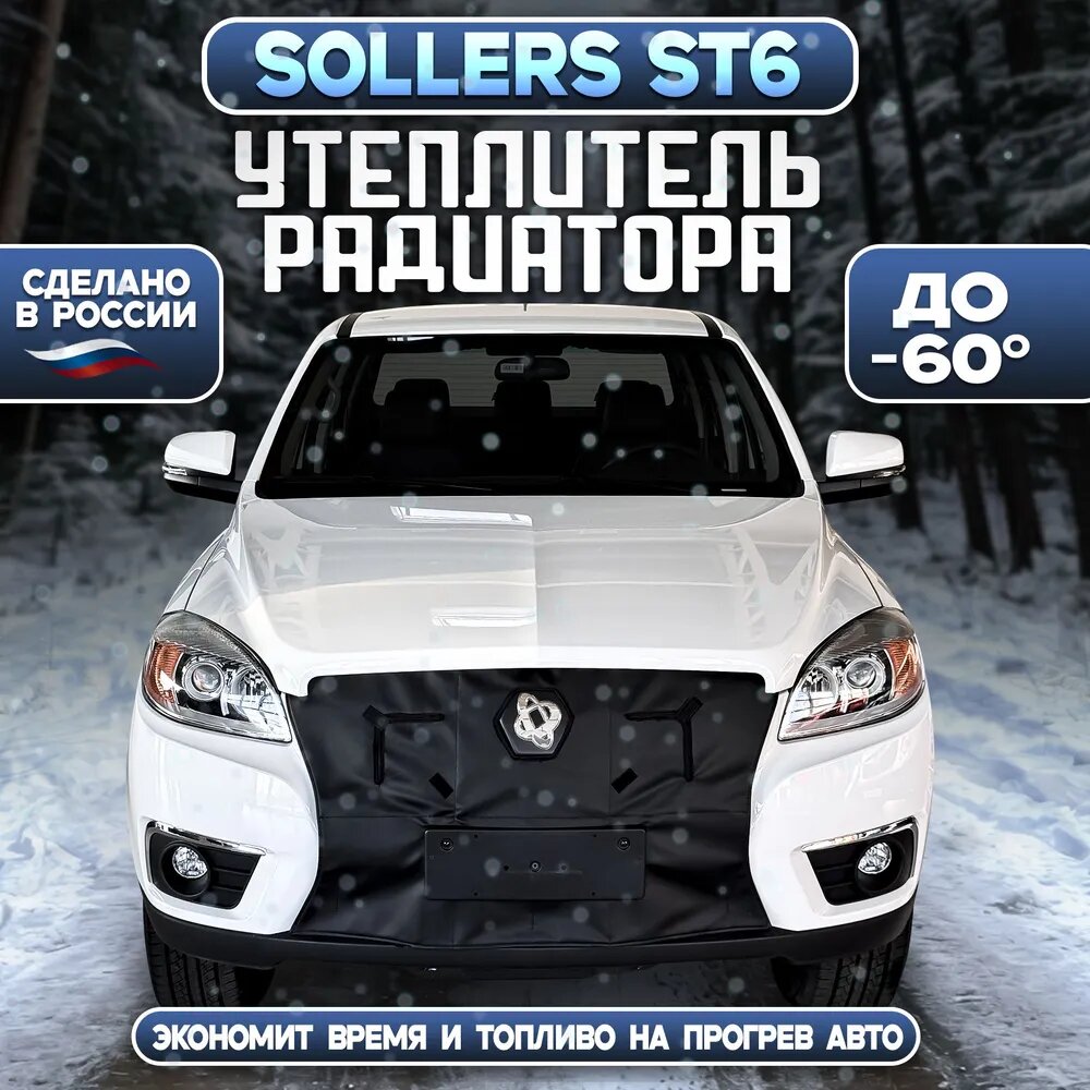 Купить Утеплитель радиатора на модель Sollers ST6. Автоодеяло ROSPROMSTAR, экокожа, крепление на липучке