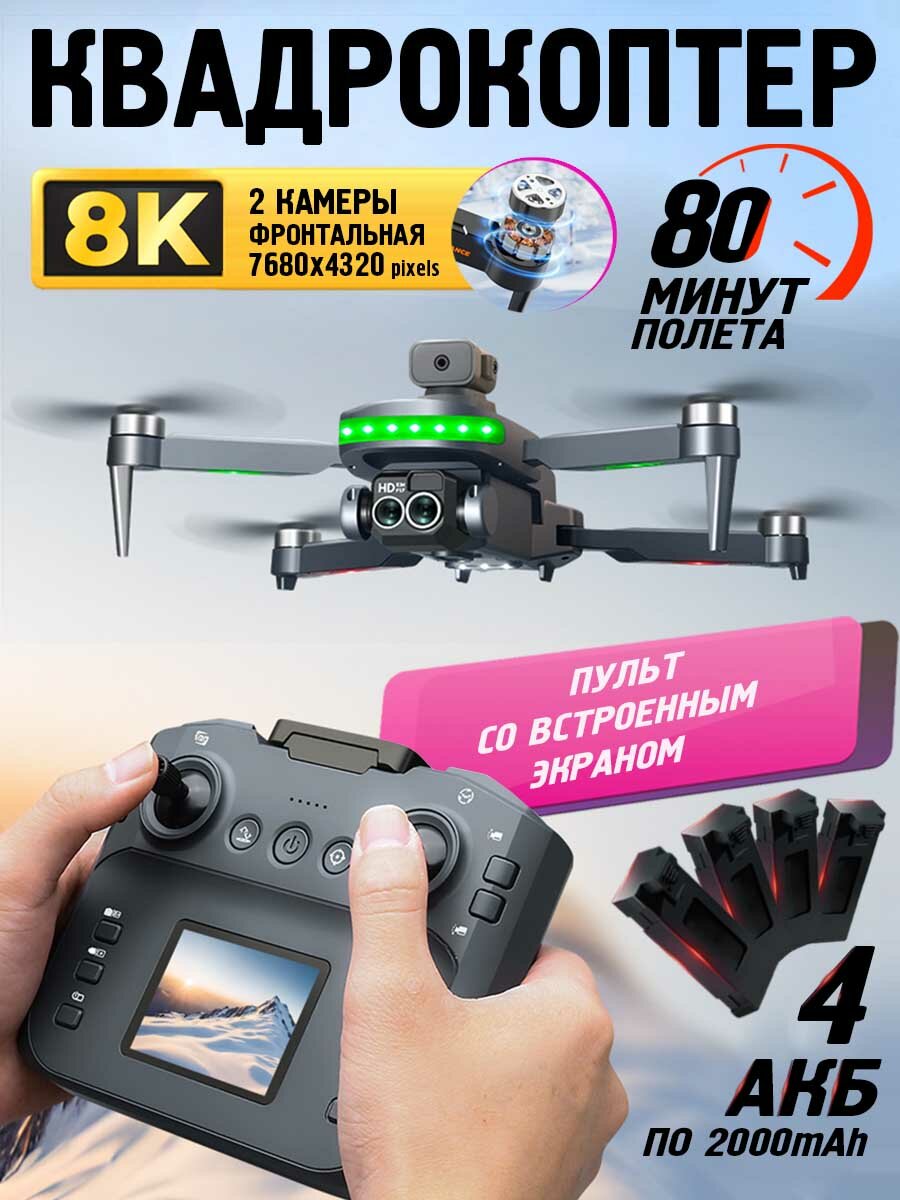 Квадрокоптер P14 Pro MAX, с камерой, 4 аккумулятора, пульт с дисплеем интересное: