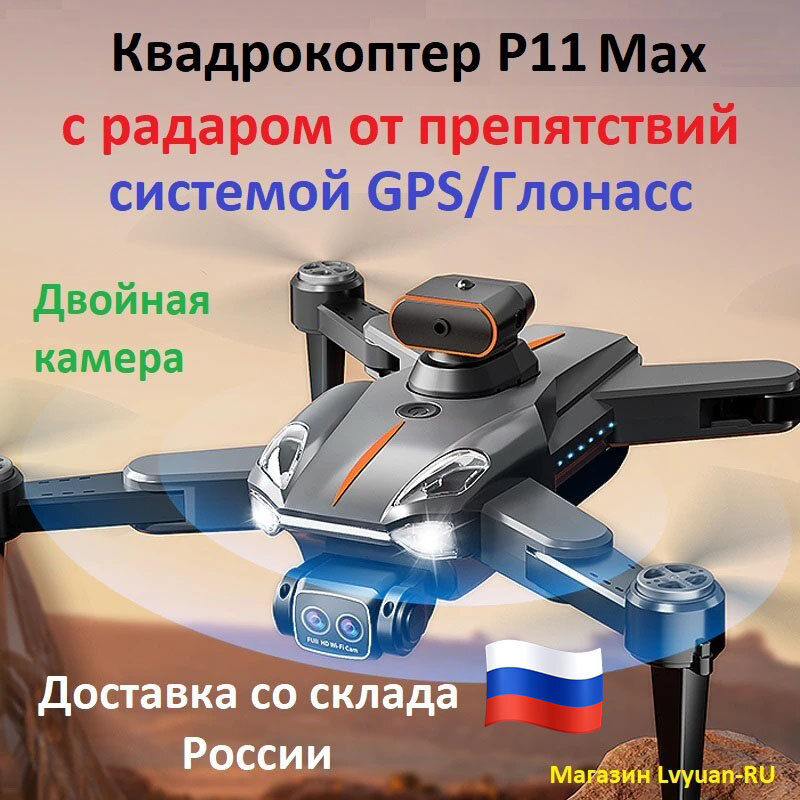 Квадрокоптер P11Max, дрон с радаром препятствия, 2 камеры 8K/HD, GPS/ГЛОНАСС интересное: