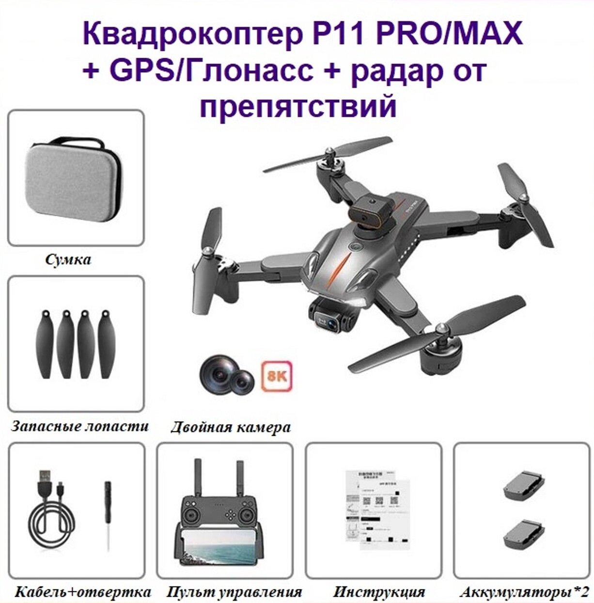 Купить Квадрокоптер P11Max, дрон с радаром препятствия, 2 камеры 8K/HD, GPS/ГЛОНАСС