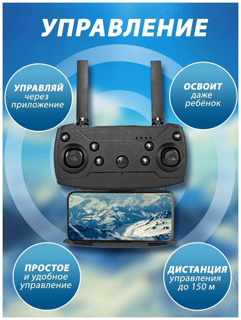 Квадрокоптер с камерой радиоуправляемый дрон E88 Pro, 3 аккумулятора, черный интересное: